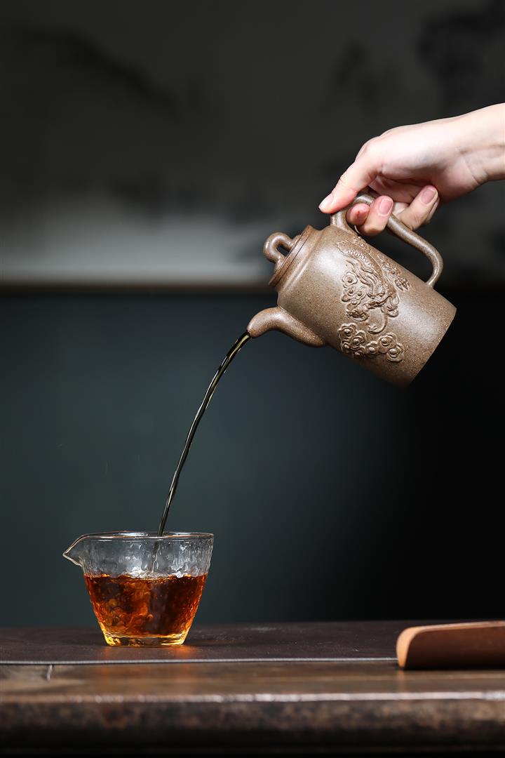 340cc原礦高溫柴燒龍骨金泥汲直茶壺POT9100