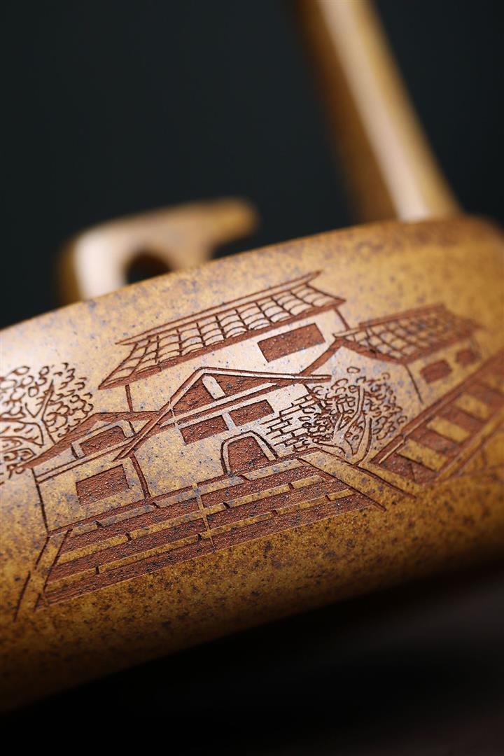 240cc原礦高溫柴燒龍骨金砂四方刻竹茶壺POT9103