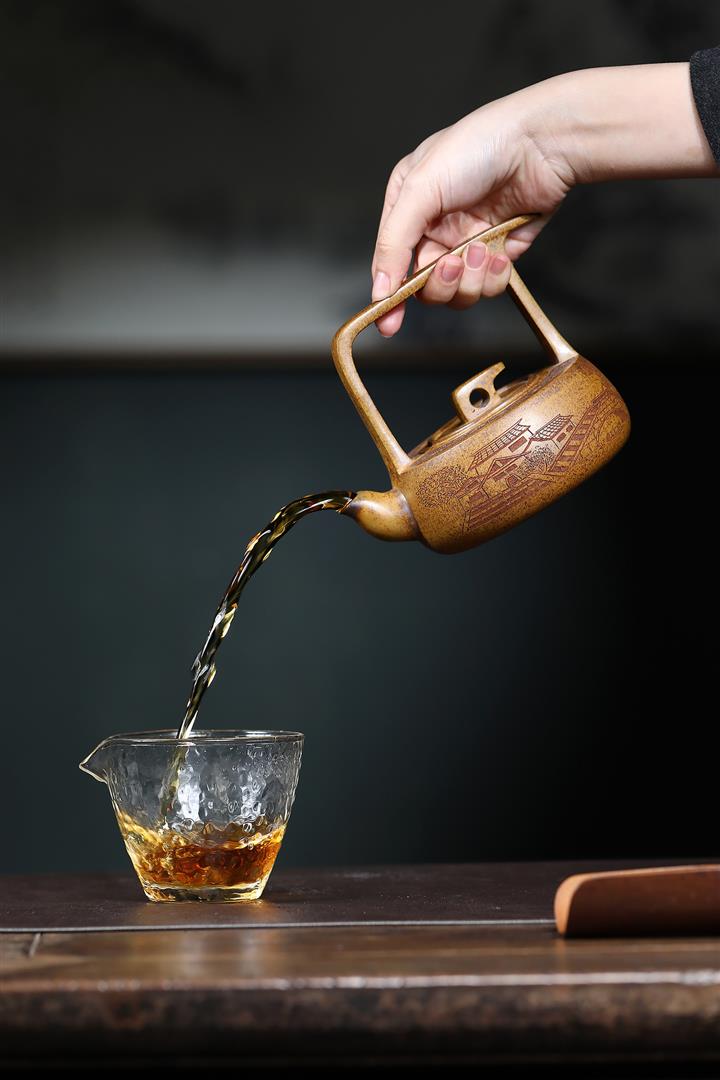 【泥料特點】砂土氣重,似淳實農民,日久使用,漸露鋒芒,養成變化,溫潤莊重。紫砂是壹種雙重氣孔結構的多孔性材質,氣孔微細,密度高。用紫砂壺沏茶,不失原味,且香不渙散,得茶之真香真味。紫砂使用越久,壺身色澤越發光亮照人,氣韻溫雅。紫砂壺長久使用器身會因撫摸擦拭,變得越發溫潤光澤。