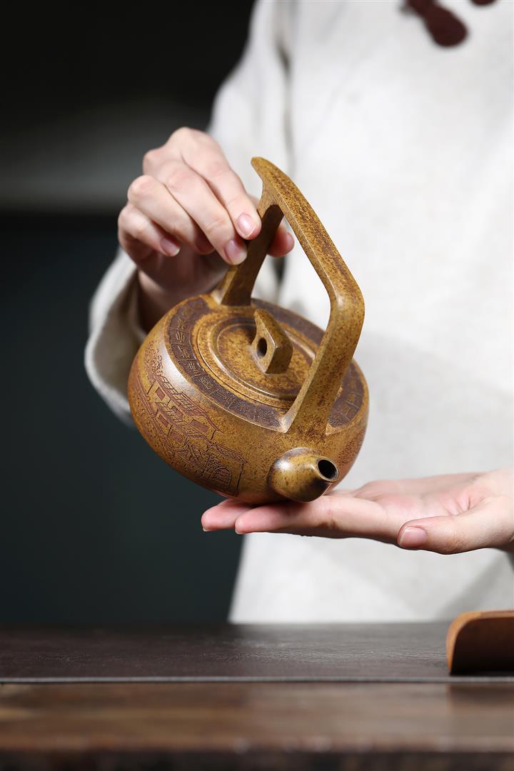 340cc原礦龍骨金砂柴燒壹帆風順提梁壺POT9101