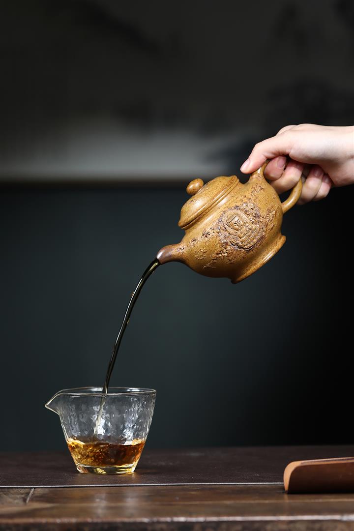 【泥料特點】砂土氣重,似淳實農民,日久使用,漸露鋒芒,養成變化,溫潤莊重。紫砂是壹種雙重氣孔結構的多孔性材質,氣孔微細,密度高。用紫砂壺沏茶,不失原味,且香不渙散,得茶之真香真味。紫砂使用越久,壺身色澤越發光亮照人,氣韻溫雅。紫砂壺長久使用器身會因撫摸擦拭,變得越發溫潤光澤。