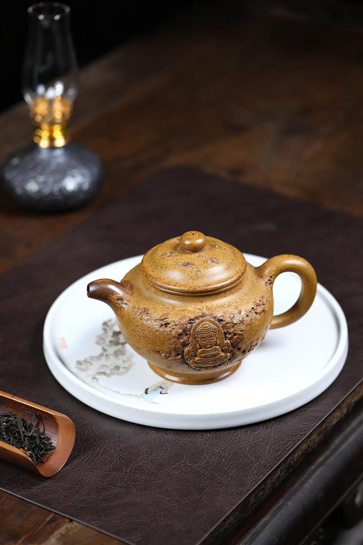400cc原礦高溫柴燒龍骨金砂鏤空如來掇只茶壺POT9102