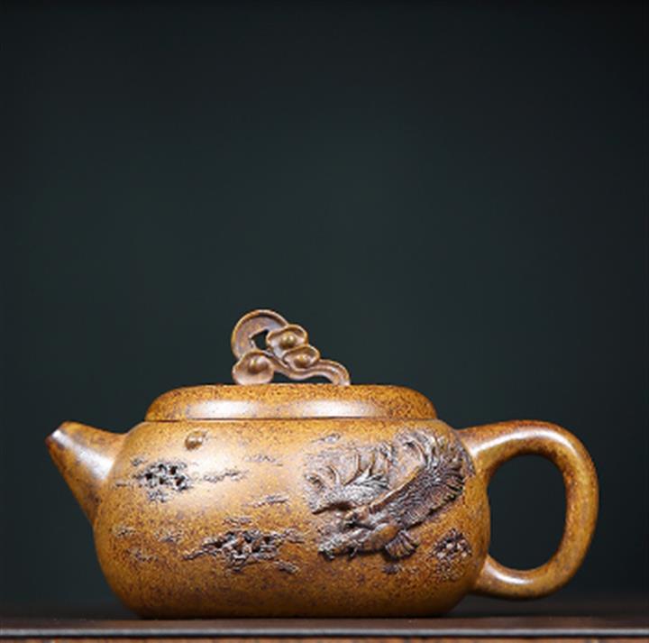 250cc原礦高溫柴燒龍骨金砂大展宏圖文旦茶壺POT9112