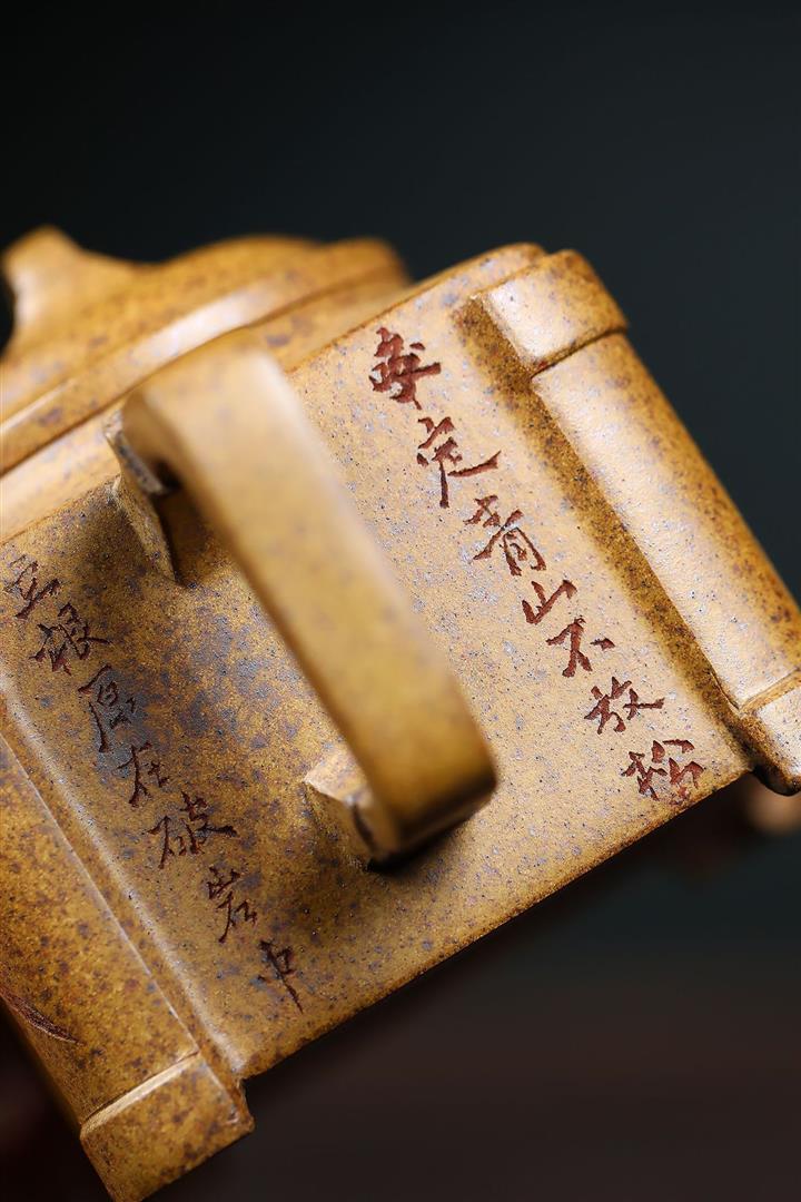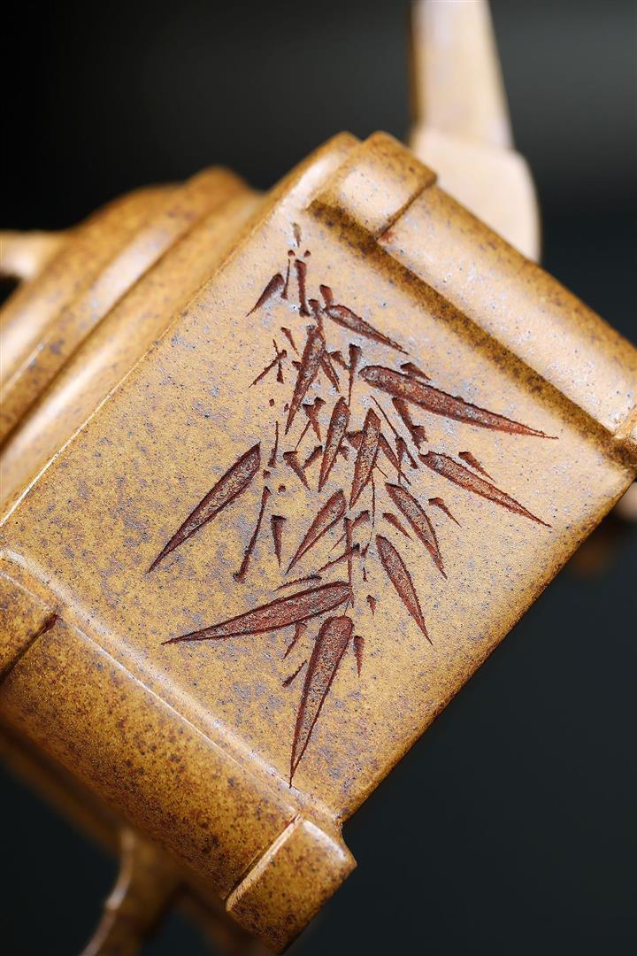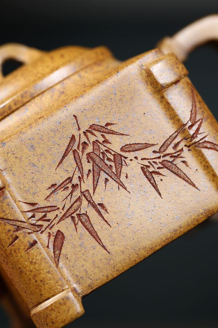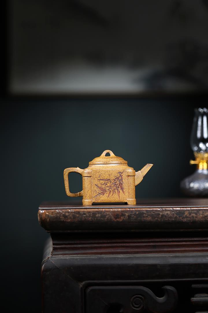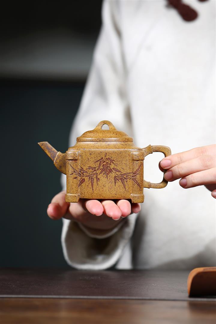 240cc原礦高溫柴燒龍骨金砂四方刻竹茶壺POT9103