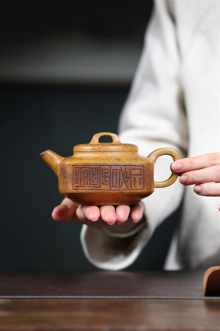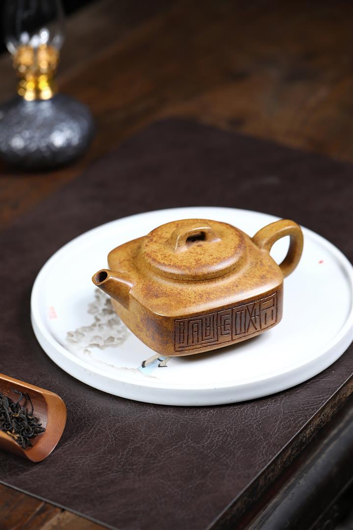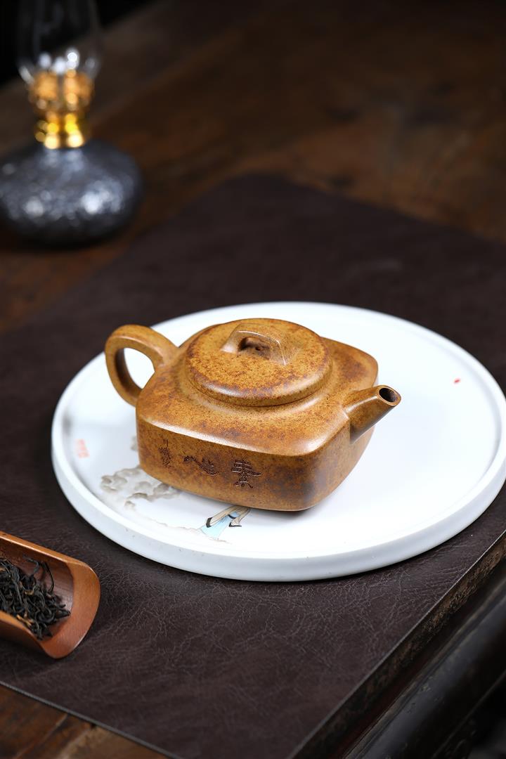 320cc原礦高溫柴燒龍骨金砂素心方圓茶壺POT9108