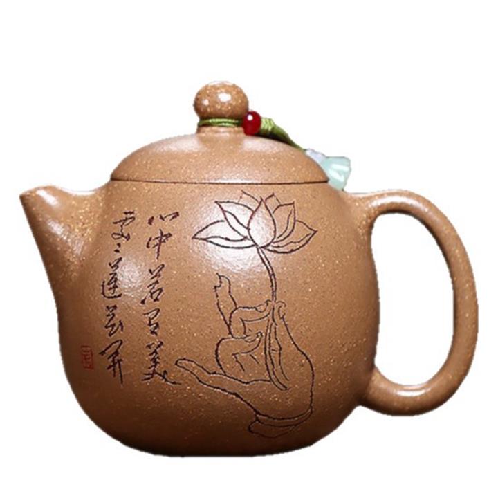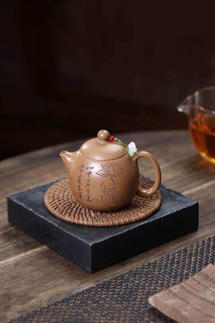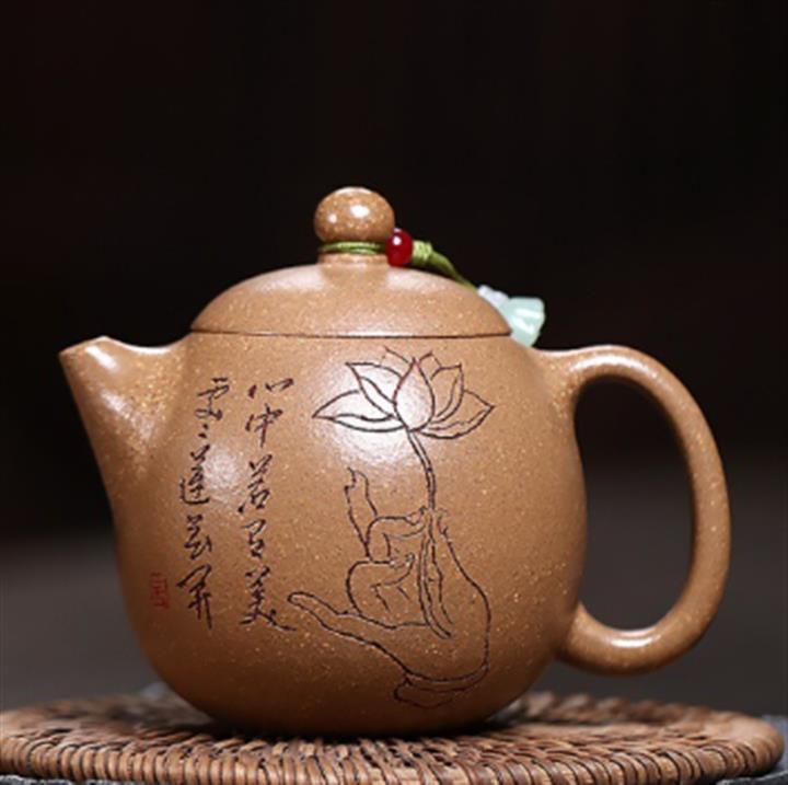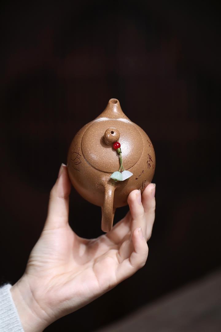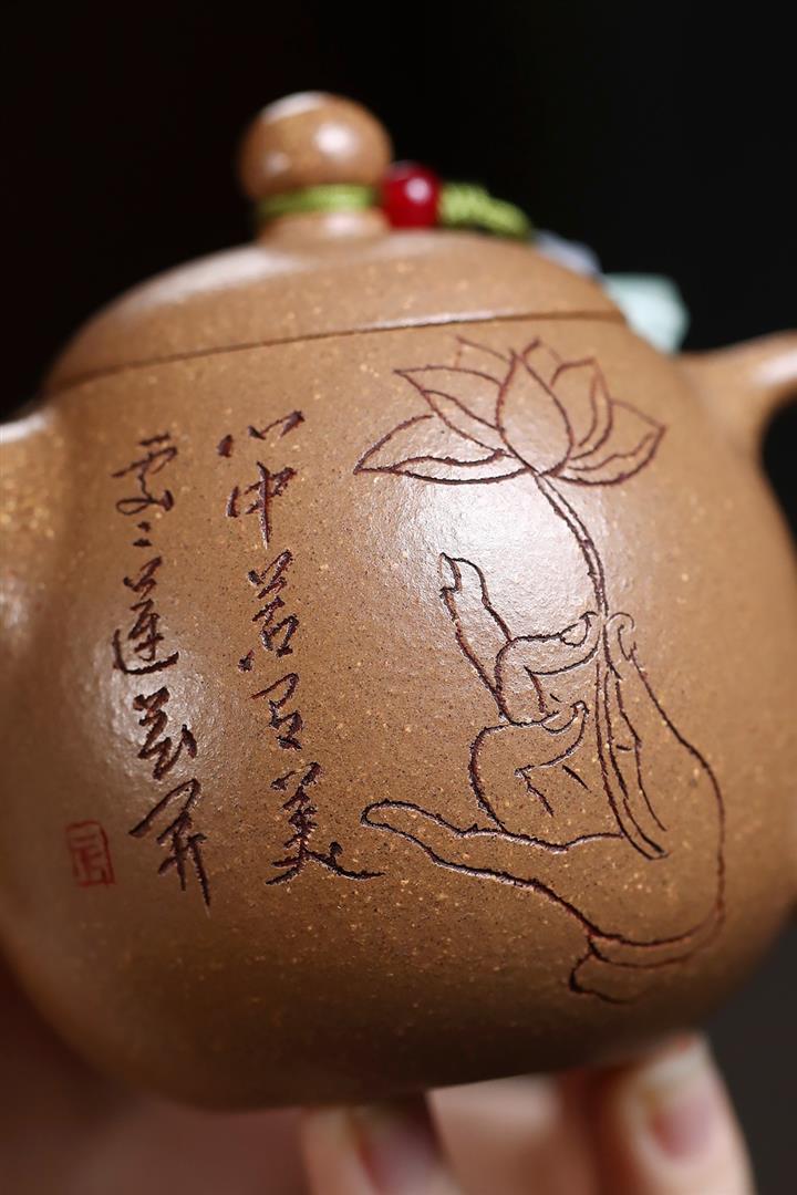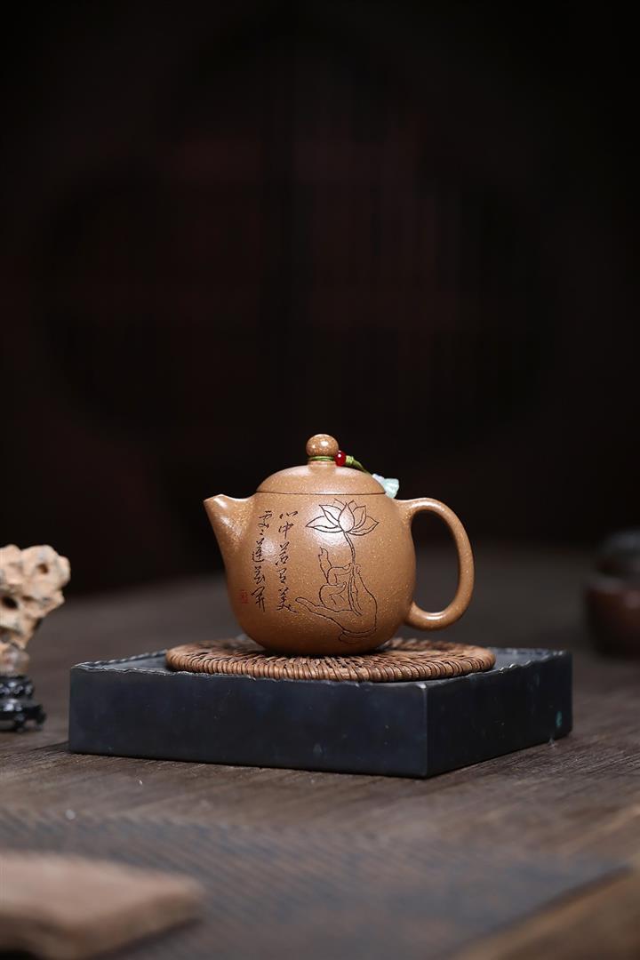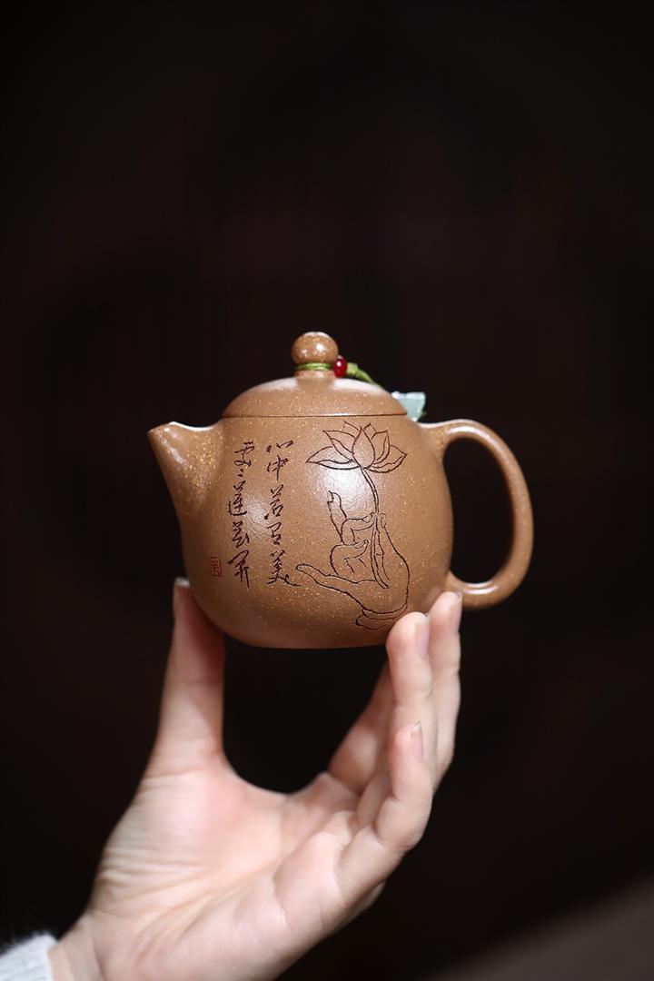 250cc原礦赤金朱泥石紋蓮華泡茶壺POT9126