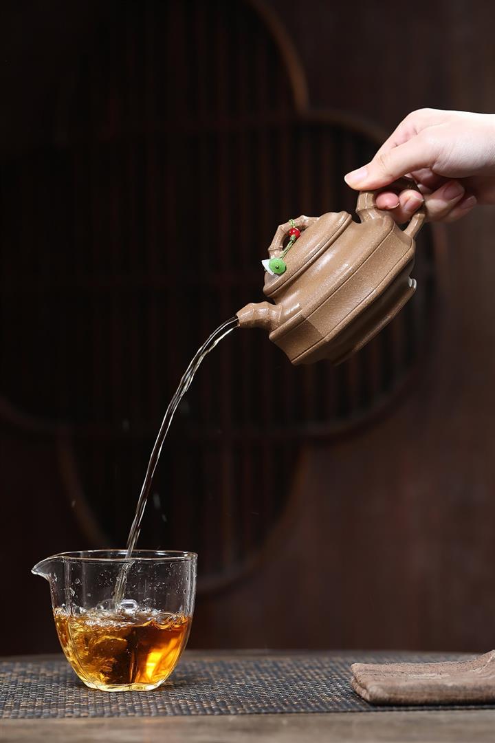 【泥料特點】砂土氣重,似淳實農民,日久使用,漸露鋒芒,養成變化,溫潤莊重。紫砂是壹種雙重氣孔結構的多孔性材質,氣孔微細,密度高。用紫砂壺沏茶,不失原味,且香不渙散,得茶之真香真味。紫砂使用越久,壺身色澤越發光亮照人,氣韻溫雅。紫砂壺長久使用器身會因撫摸擦拭,變得越發溫潤光澤。