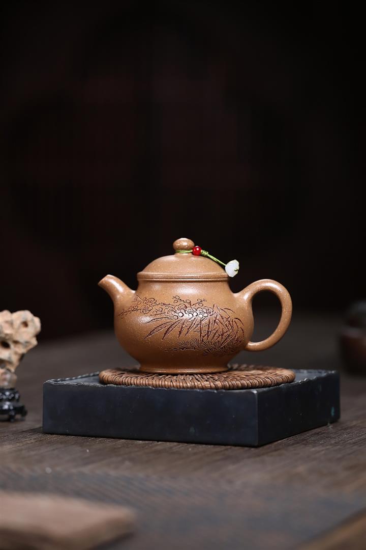 【作品介紹】此款壺形線條流暢,壺把,壺嘴,壺身壹氣呵成栩栩如生,是收藏把玩的好壺,泥料色澤古樸典雅,日久使用,漸露鋒芒,養成變化快,溫潤莊重,用其泡茶,使用的年代久,壺身就溫潤,泡出來的茶湯也就醇郁芳馨。