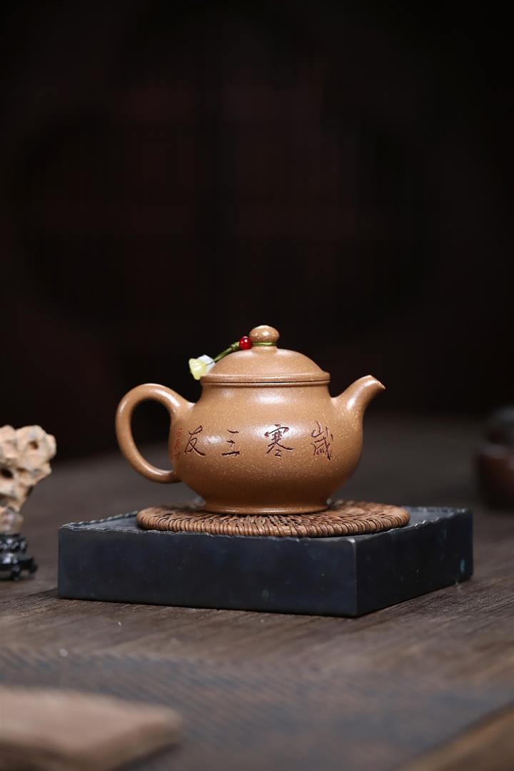 250cc原礦赤金朱泥石紋蓮華泡茶壺POT9126