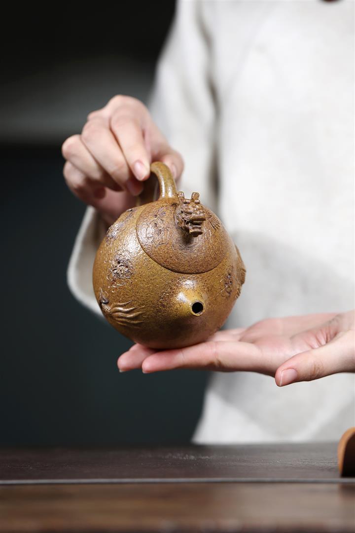 300cc原礦柴燒龍骨金砂隱龍龍蛋茶壺POT9122