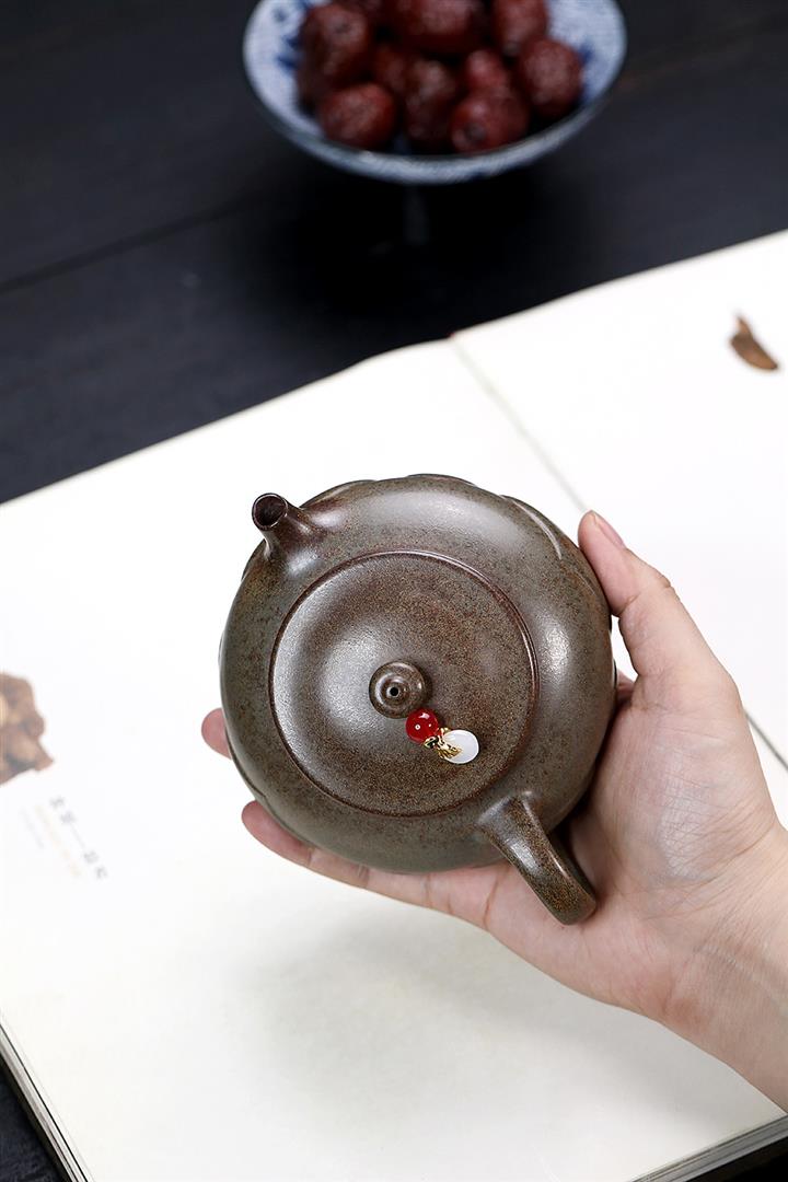 360cc原礦玄鐵石黃松鶴龍蛋泡茶壺POT9136