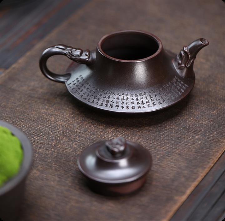 240cc原礦古烏泥彩刻四方竹節茶壺POT9148