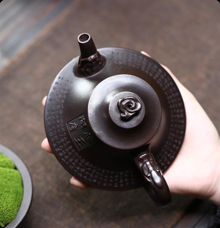 【泥料特點】砂土氣重,似淳實農民,日久使用,漸露鋒芒,養成變化,溫潤莊重。紫砂是壹種雙重氣孔結構的多孔性材質,氣孔微細,密度高。用紫砂壺沏茶,不失原味,且香不渙散,得茶之真香真味。紫砂使用越久,壺身色澤越發光亮照人,氣韻溫雅。紫砂壺長久使用器身會因撫摸擦拭,變得越發溫潤光澤。