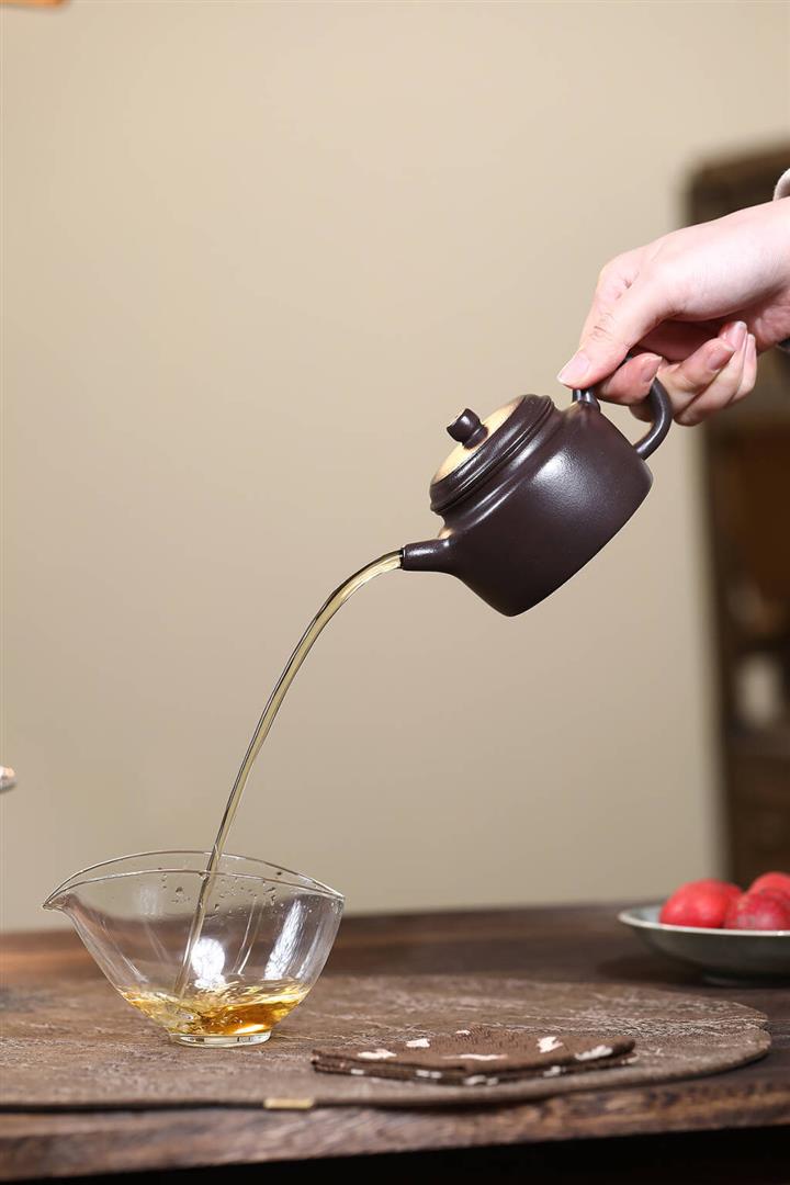 【作品介紹】此款壺形線條流暢,壺把,壺嘴,壺身壹氣呵成栩栩如生,是收藏把玩的好壺,泥料色澤古樸典雅,日久使用,漸露鋒芒,養成變化快,溫潤莊重,用其泡茶,使用的年代久,壺身就溫潤,泡出來的茶湯也就醇郁芳馨。