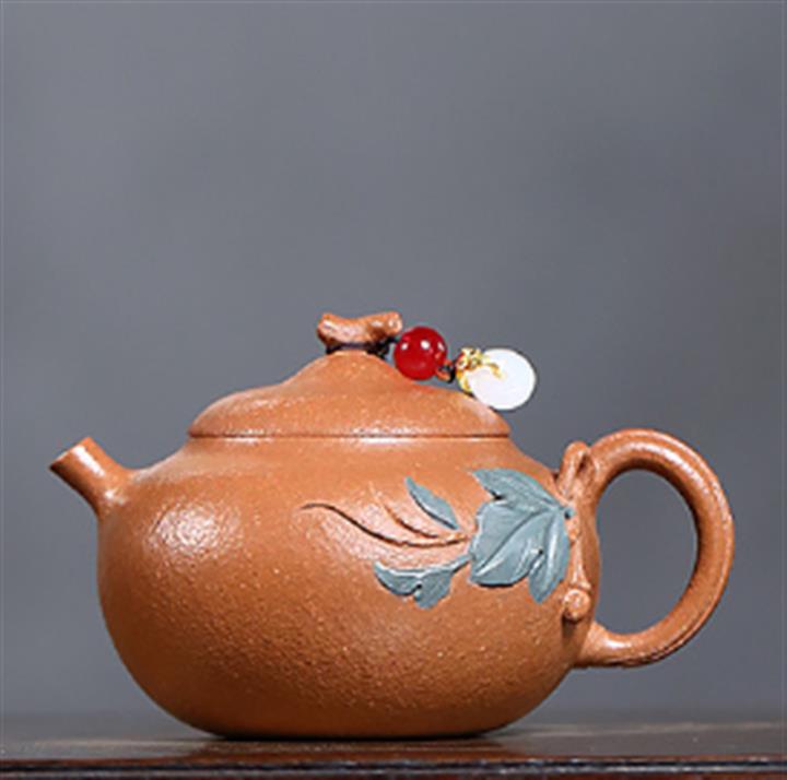 380cc原礦段泥火雲燒花鳥秦權茶壺POT9154