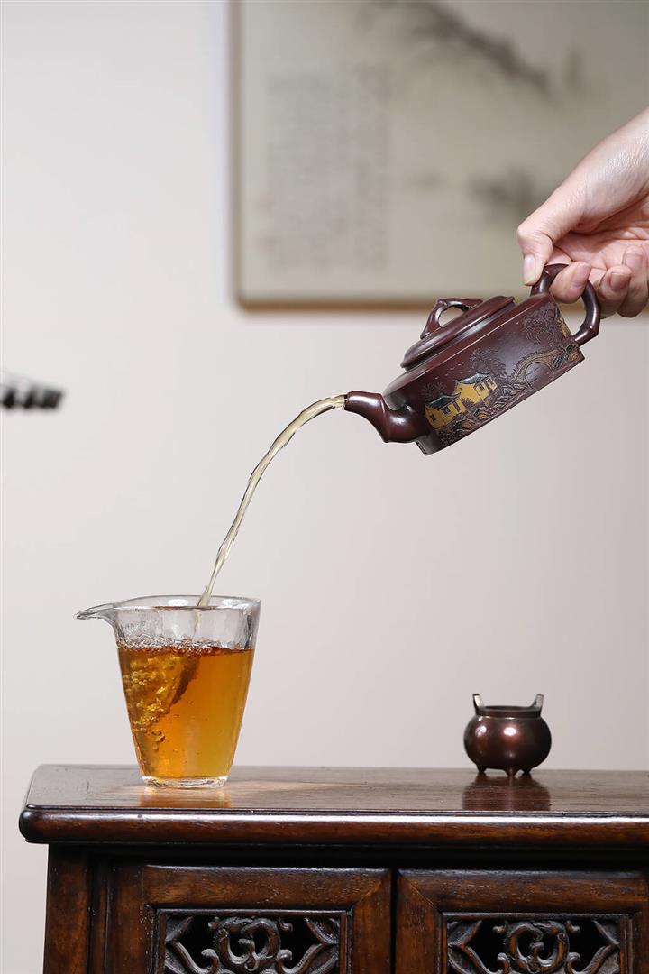 【泥料特點】砂土氣重,似淳實農民,日久使用,漸露鋒芒,養成變化,溫潤莊重。紫砂是壹種雙重氣孔結構的多孔性材質,氣孔微細,密度高。用紫砂壺沏茶,不失原味,且香不渙散,得茶之真香真味。紫砂使用越久,壺身色澤越發光亮照人,氣韻溫雅。紫砂壺長久使用器身會因撫摸擦拭,變得越發溫潤光澤。