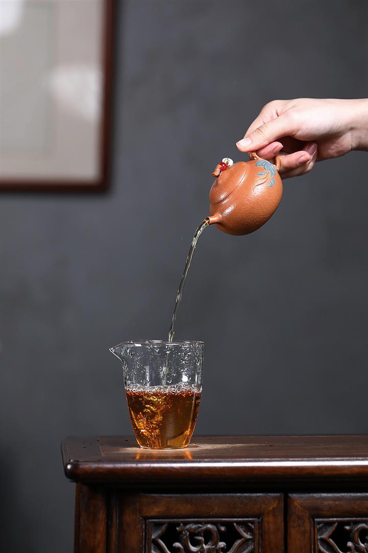【泥料特點】砂土氣重,似淳實農民,日久使用,漸露鋒芒,養成變化,溫潤莊重。紫砂是壹種雙重氣孔結構的多孔性材質,氣孔微細,密度高。用紫砂壺沏茶,不失原味,且香不渙散,得茶之真香真味。紫砂使用越久,壺身色澤越發光亮照人,氣韻溫雅。紫砂壺長久使用器身會因撫摸擦拭,變得越發溫潤光澤。