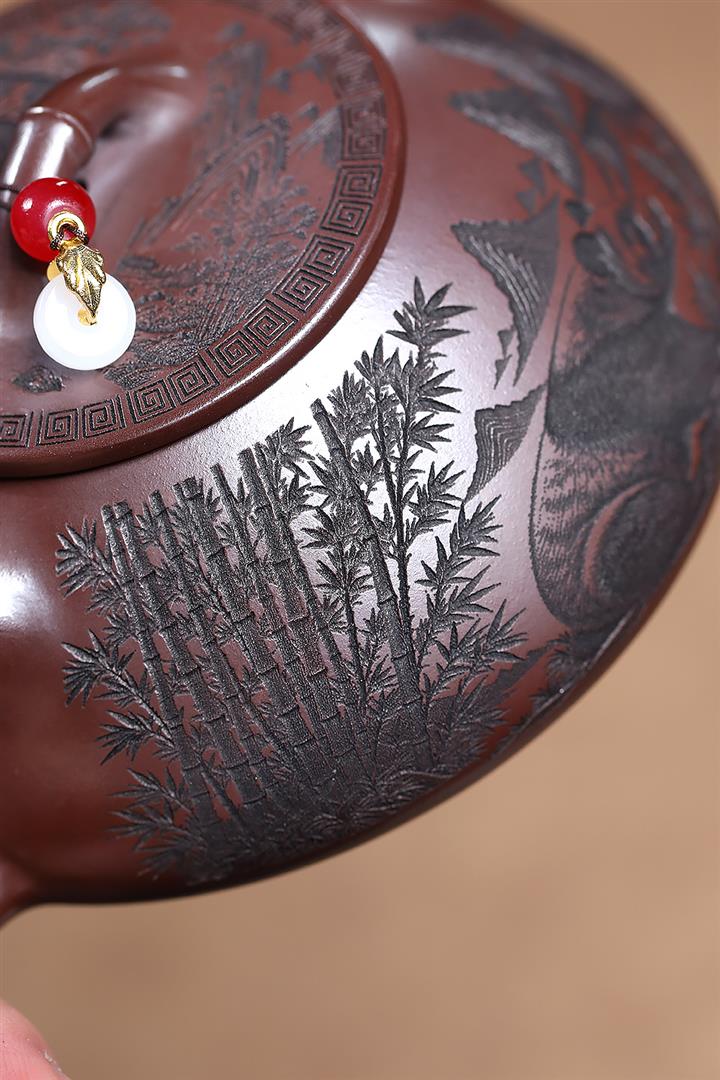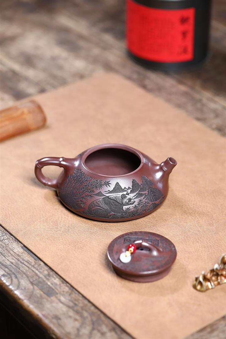 240cc原礦石紅刻繪熊貓竹瓢泡茶壺POT9161