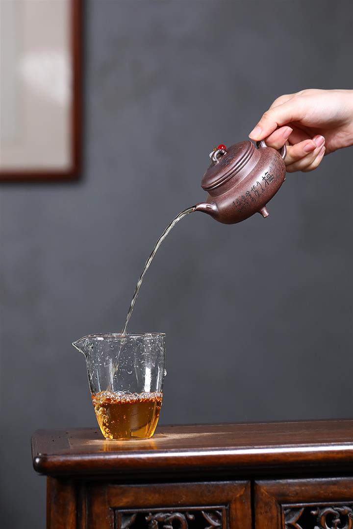 【泥料特點】砂土氣重,似淳實農民,日久使用,漸露鋒芒,養成變化,溫潤莊重。紫砂是壹種雙重氣孔結構的多孔性材質,氣孔微細,密度高。用紫砂壺沏茶,不失原味,且香不渙散,得茶之真香真味。紫砂使用越久,壺身色澤越發光亮照人,氣韻溫雅。紫砂壺長久使用器身會因撫摸擦拭,變得越發溫潤光澤。