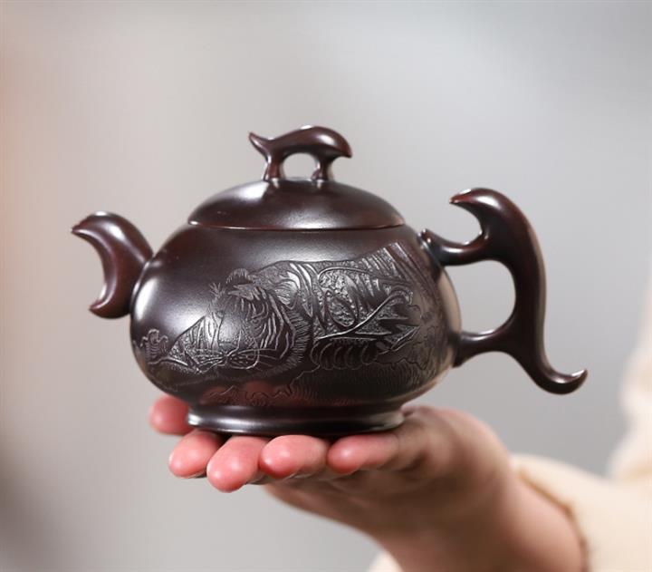【作品介紹】此款壺形線條流暢,壺把,壺嘴,壺身壹氣呵成栩栩如生,是收藏把玩的好壺,泥料色澤古樸典雅,日久使用,漸露鋒芒,養成變化快,溫潤莊重,用其泡茶,使用的年代久,壺身就溫潤,泡出來的茶湯也就醇郁芳馨。
