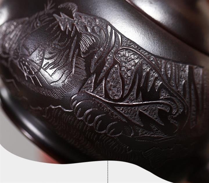 330cc原礦玄鐵石黃鹿鳴松鶴掇只茶壺POT9190