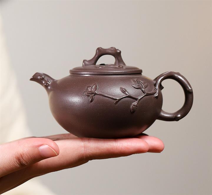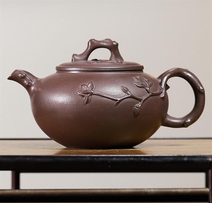 190cc原礦紅降坡傲梅圓瓦茶壺POT9193