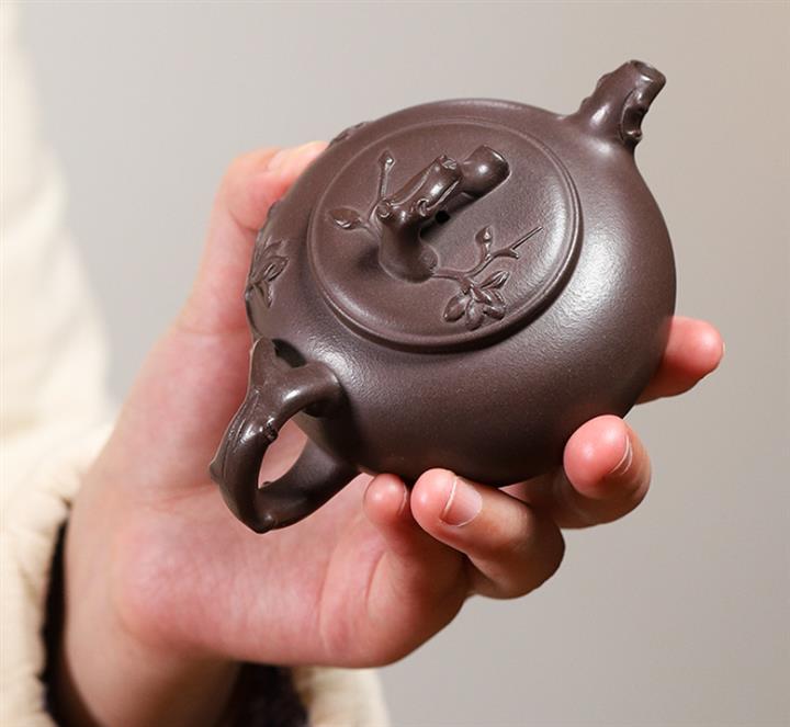 【泥料特點】砂土氣重,似淳實農民,日久使用,漸露鋒芒,養成變化,溫潤莊重。紫砂是壹種雙重氣孔結構的多孔性材質,氣孔微細,密度高。用紫砂壺沏茶,不失原味,且香不渙散,得茶之真香真味。紫砂使用越久,壺身色澤越發光亮照人,氣韻溫雅。紫砂壺長久使用器身會因撫摸擦拭,變得越發溫潤光澤。