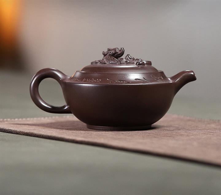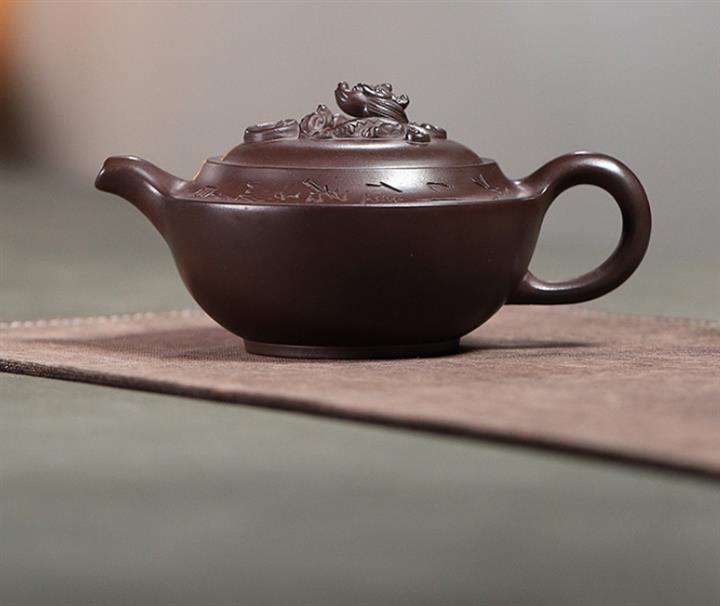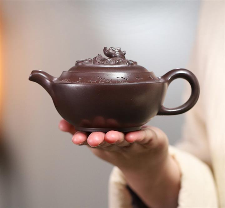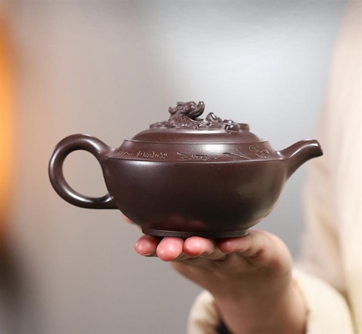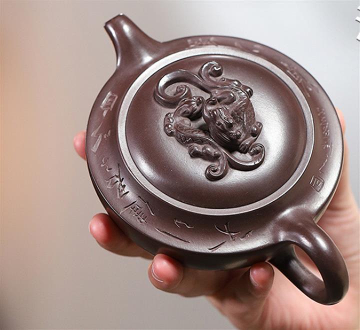 280cc原礦古烏泥刻繪般若禪韻飛把茶壺POT9197