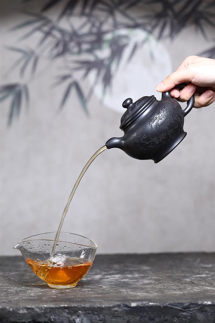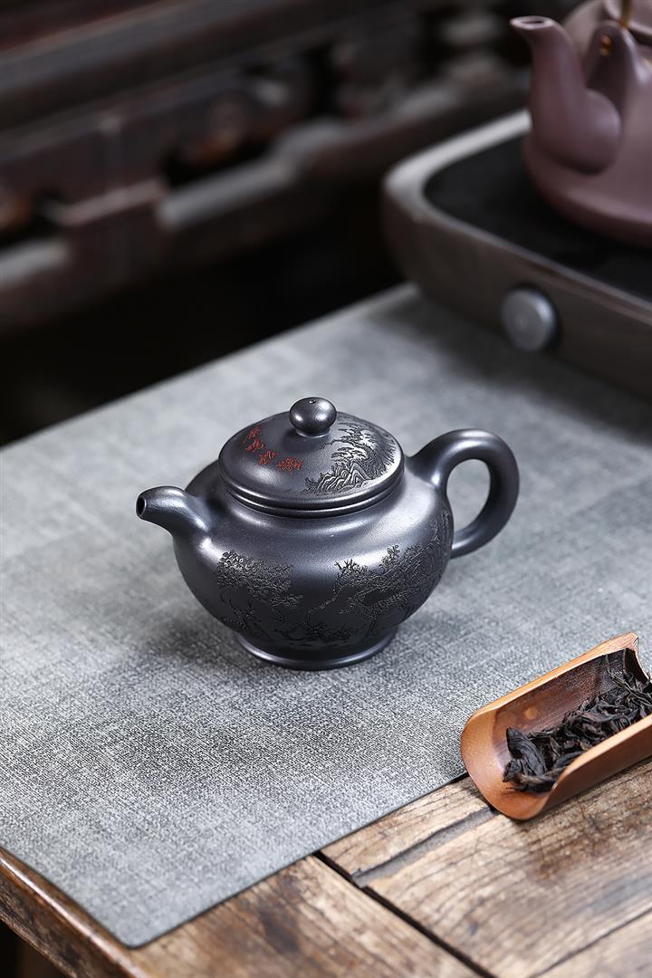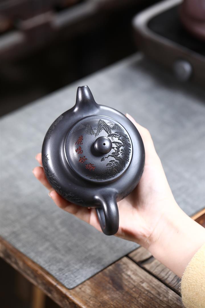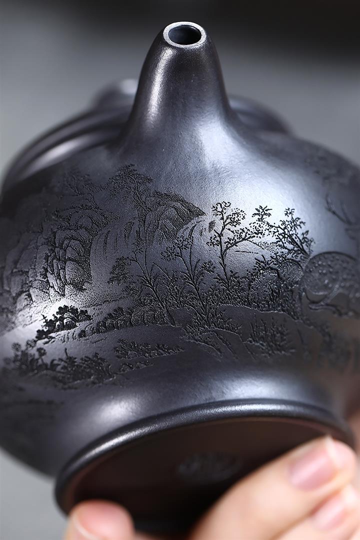 280cc原礦古烏泥刻繪般若禪韻飛把茶壺POT9197