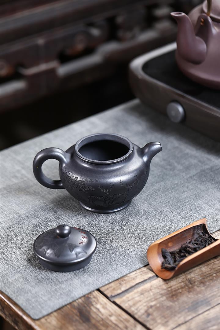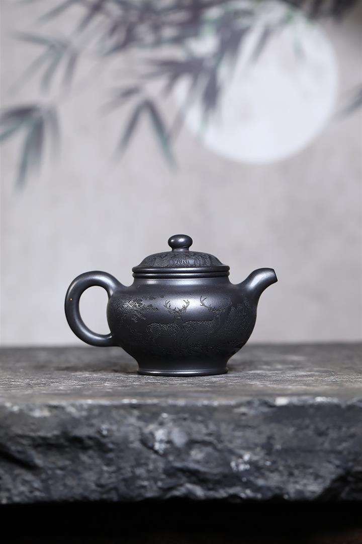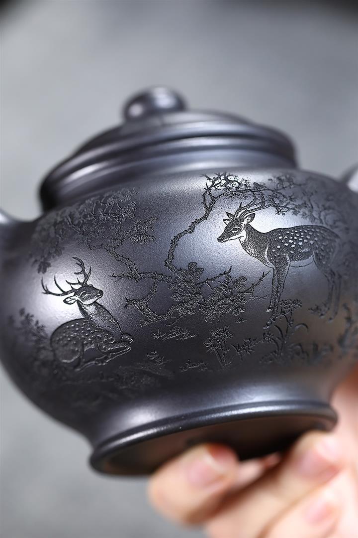 330cc原礦玄鐵石黃鹿鳴松鶴掇只茶壺POT9190
