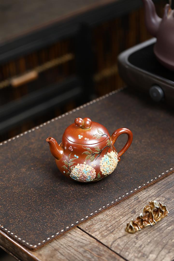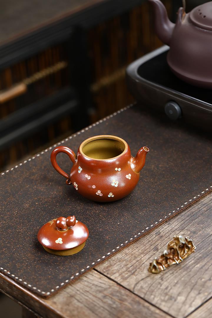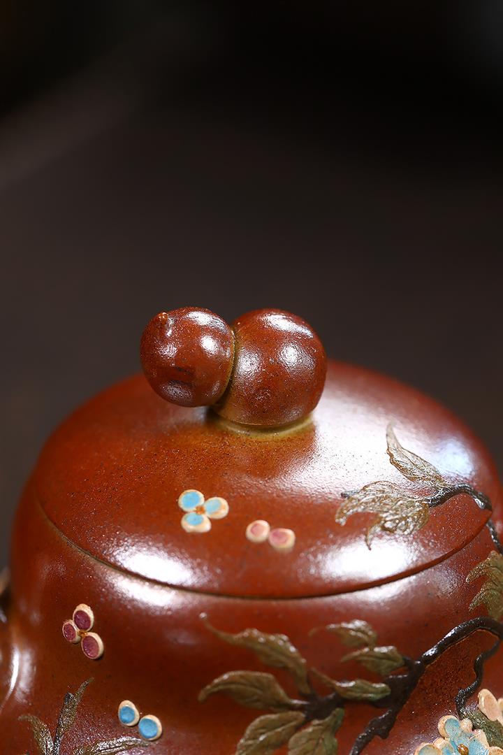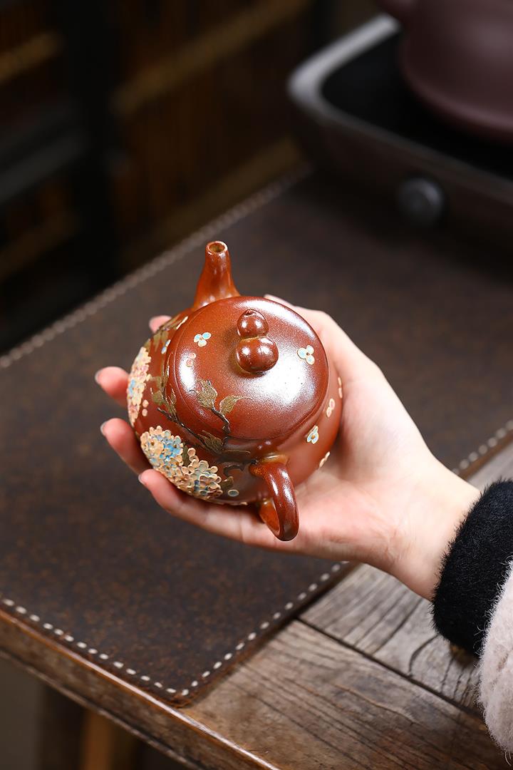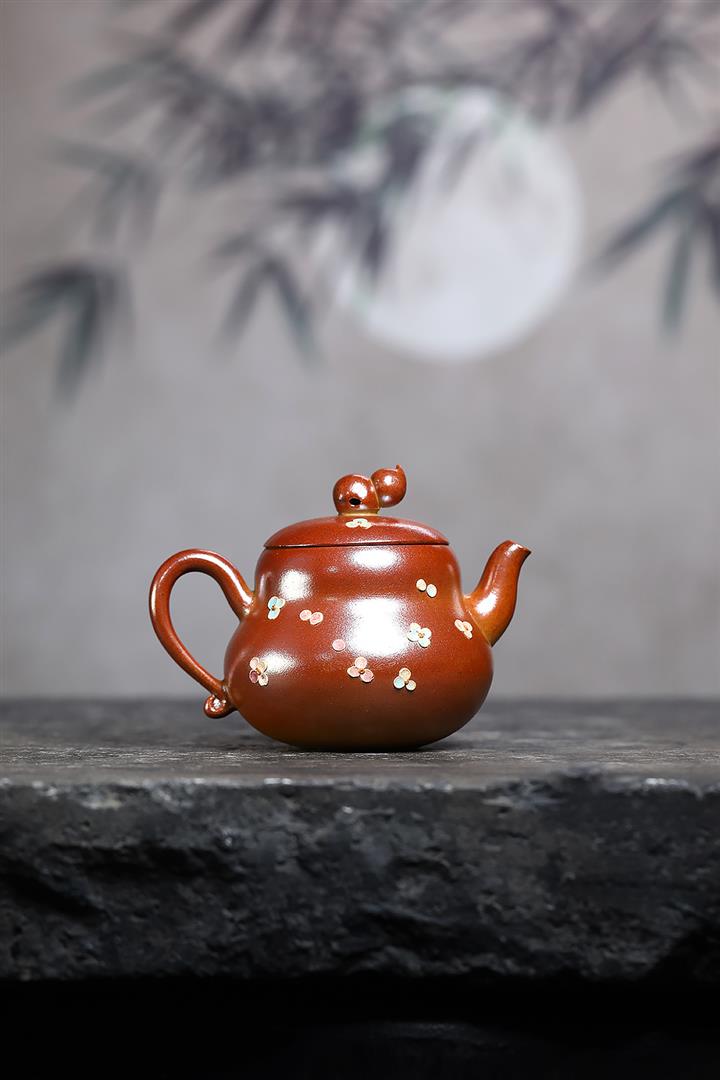 190cc原礦紅降坡傲梅圓瓦茶壺POT9193