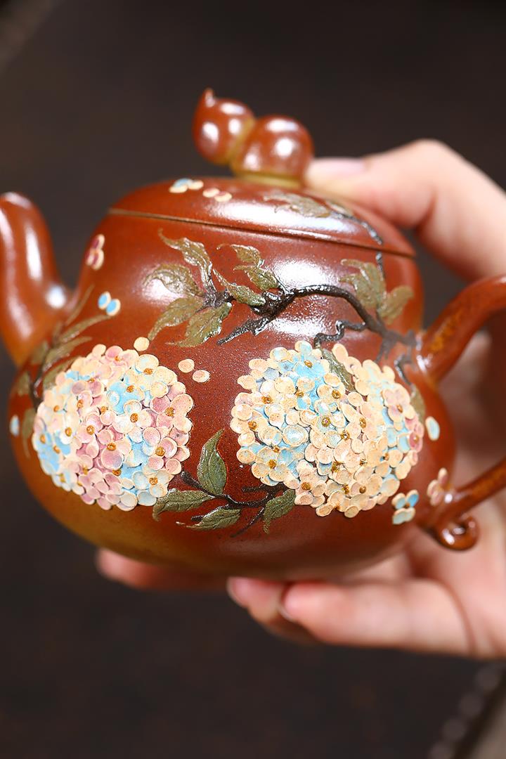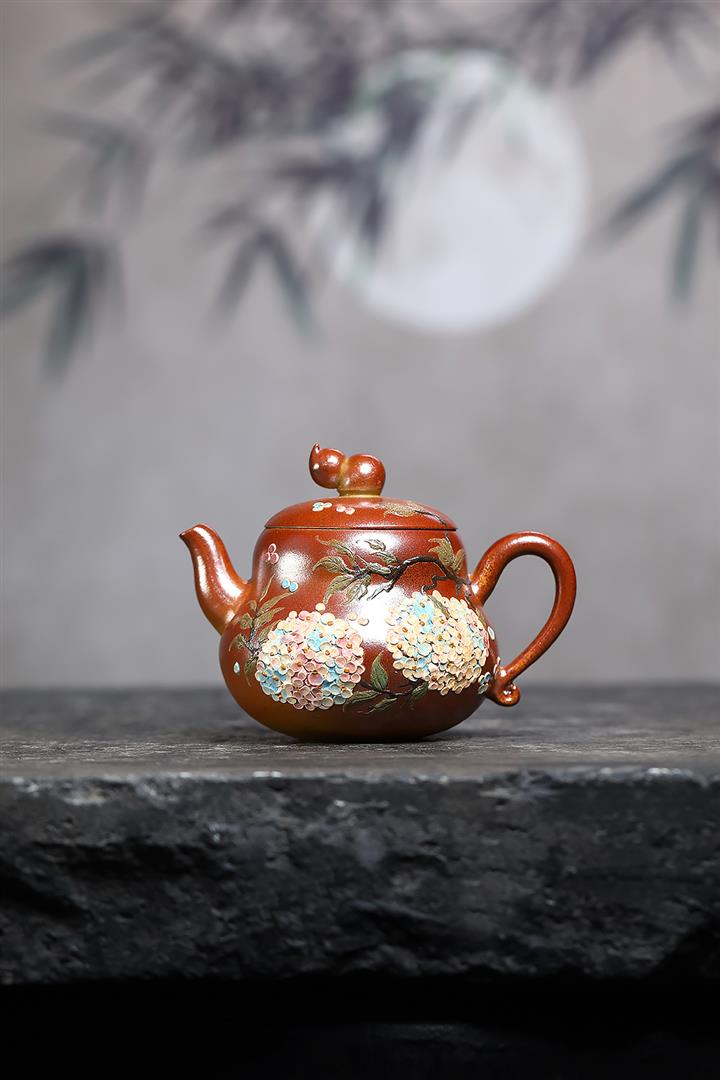 250cc原礦段泥火雲燒繁花葫蘆茶壺POT9192
