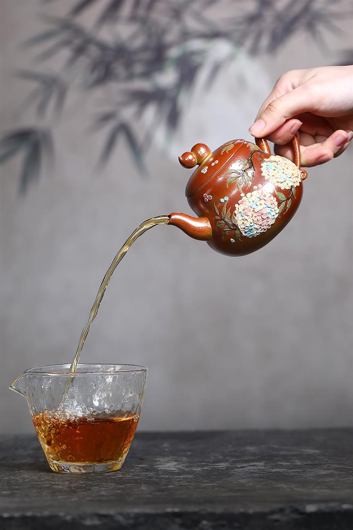 【泥料特點】砂土氣重,似淳實農民,日久使用,漸露鋒芒,養成變化,溫潤莊重。紫砂是壹種雙重氣孔結構的多孔性材質,氣孔微細,密度高。用紫砂壺沏茶,不失原味,且香不渙散,得茶之真香真味。紫砂使用越久,壺身色澤越發光亮照人,氣韻溫雅。紫砂壺長久使用器身會因撫摸擦拭,變得越發溫潤光澤。