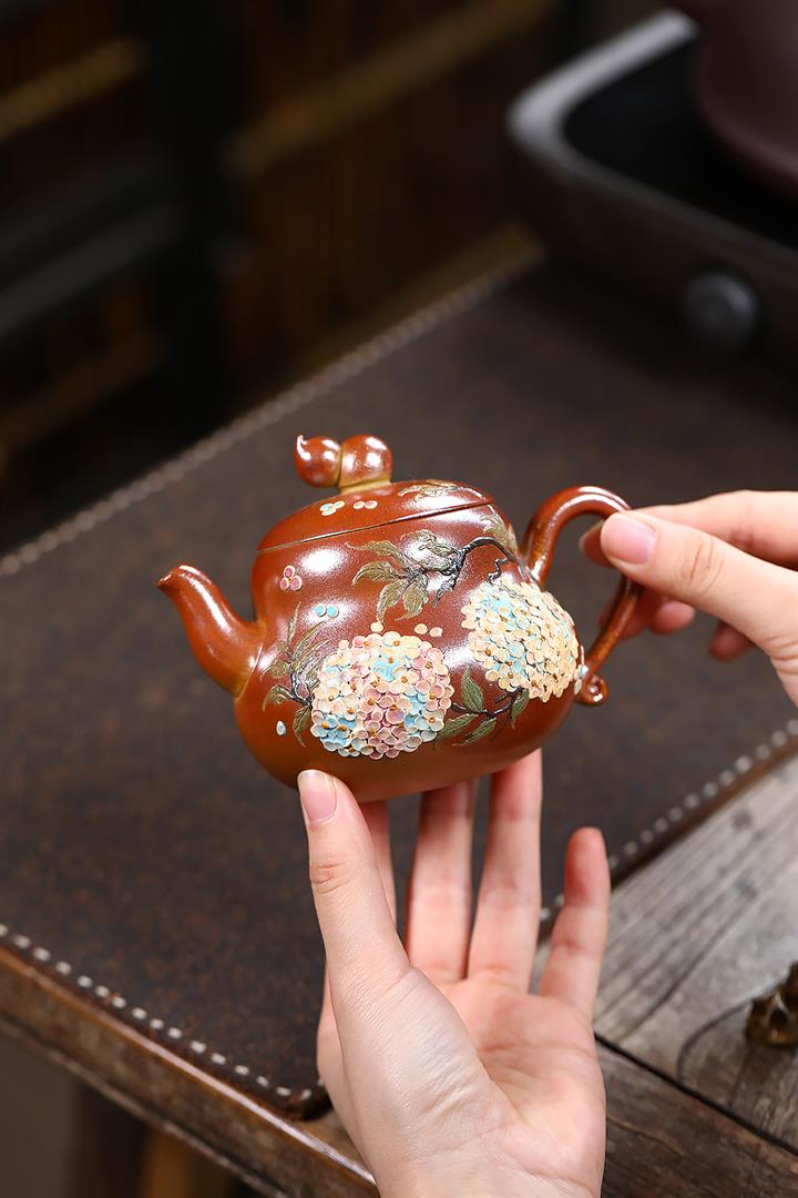 150cc原礦大紅袍小品壽桃寒江茶壺POT9196