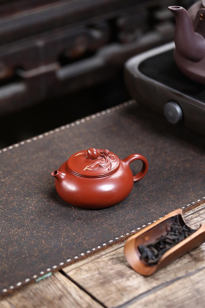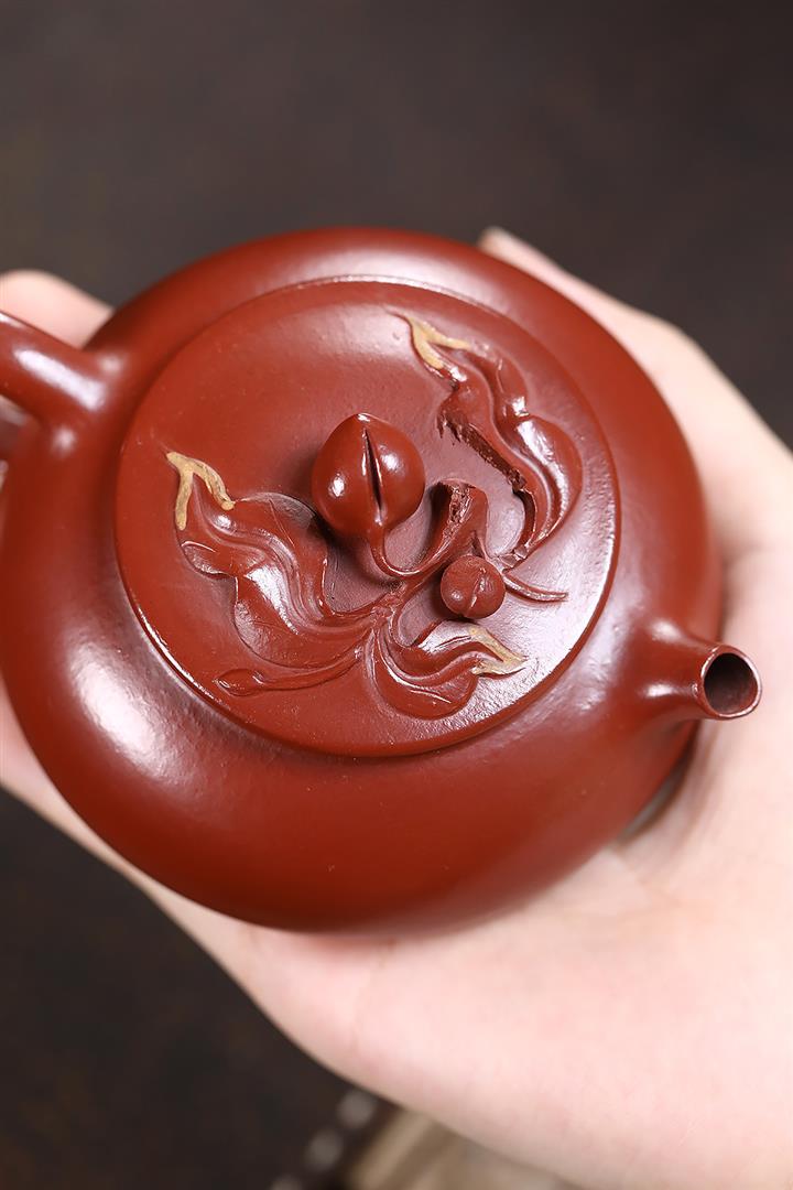 150cc原礦大紅袍小品壽桃寒江茶壺POT9196