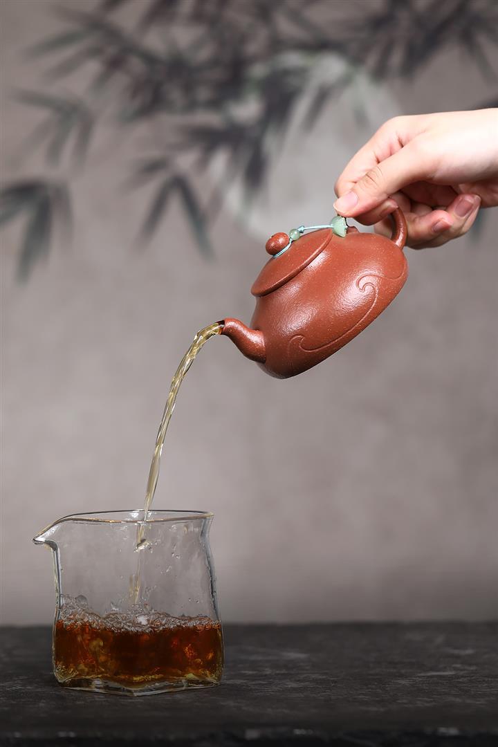 【泥料特點】砂土氣重,似淳實農民,日久使用,漸露鋒芒,養成變化,溫潤莊重。紫砂是壹種雙重氣孔結構的多孔性材質,氣孔微細,密度高。用紫砂壺沏茶,不失原味,且香不渙散,得茶之真香真味。紫砂使用越久,壺身色澤越發光亮照人,氣韻溫雅。紫砂壺長久使用器身會因撫摸擦拭,變得越發溫潤光澤。