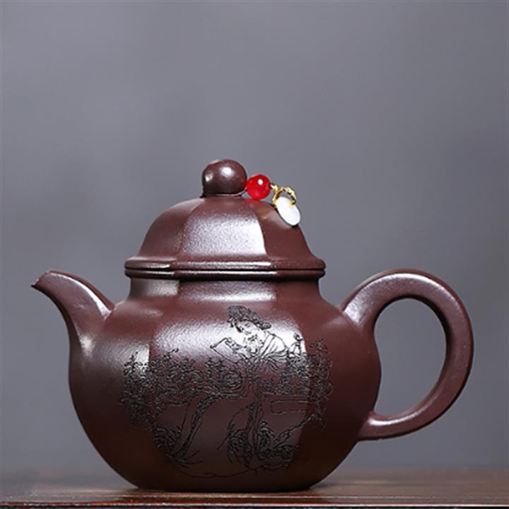 520cc原礦石紅竹林七賢曲壺泡茶壺POT9212