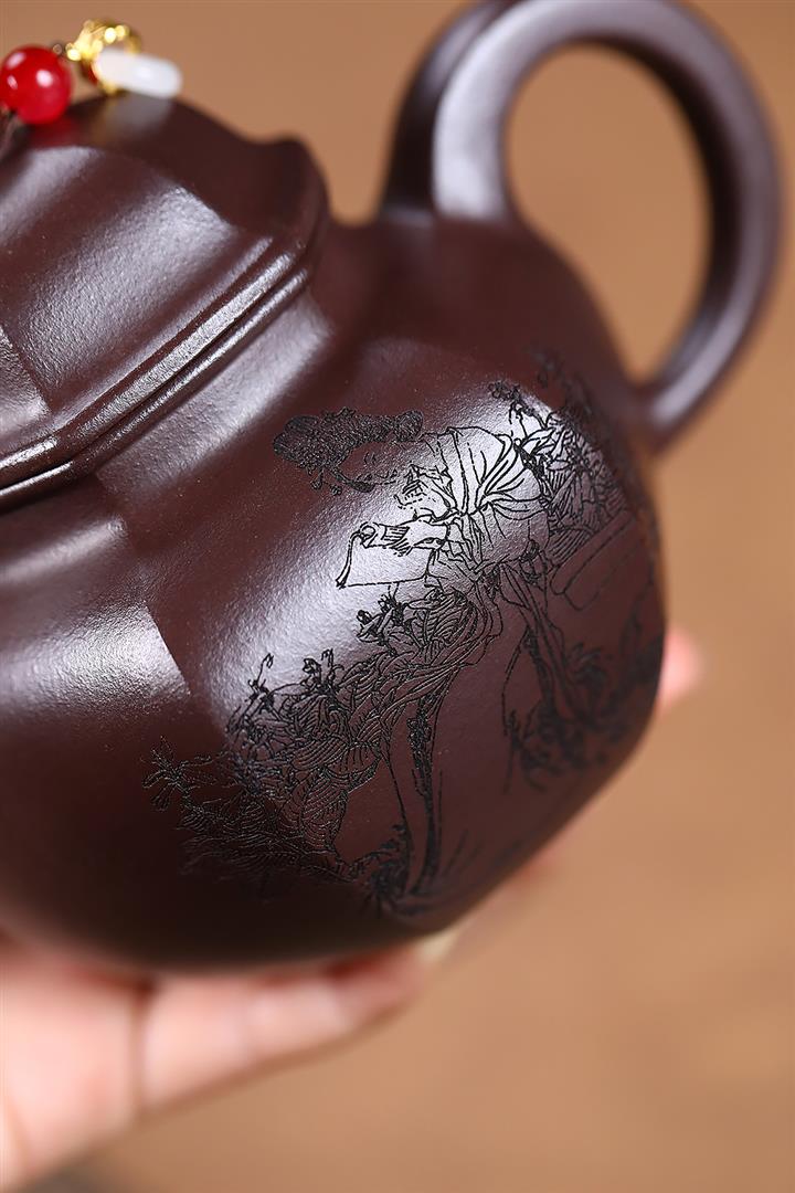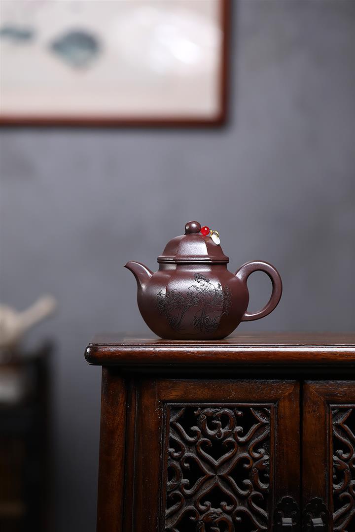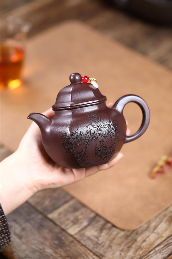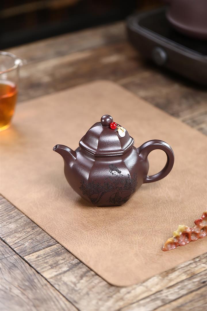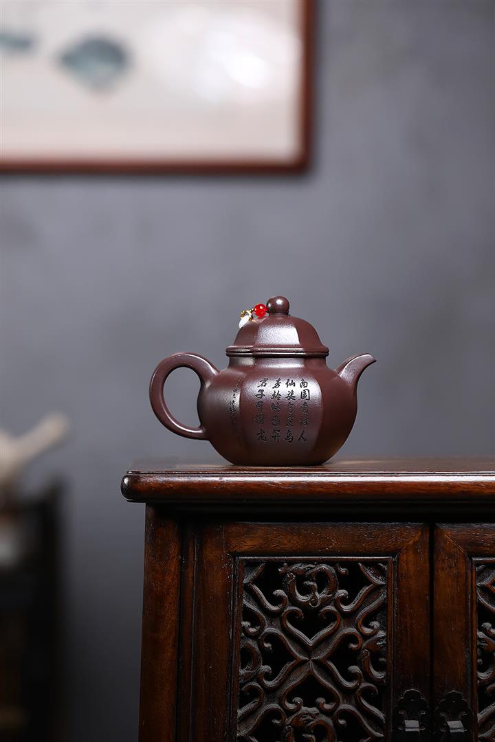 280cc原礦老紫泥六方掇球泡茶壺POT9213