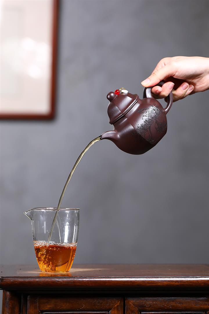 【作品介紹】此款壺形線條流暢,壺把,壺嘴,壺身壹氣呵成栩栩如生,是收藏把玩的好壺,泥料色澤古樸典雅,日久使用,漸露鋒芒,養成變化快,溫潤莊重,用其泡茶,使用的年代久,壺身就溫潤,泡出來的茶湯也就醇郁芳馨。