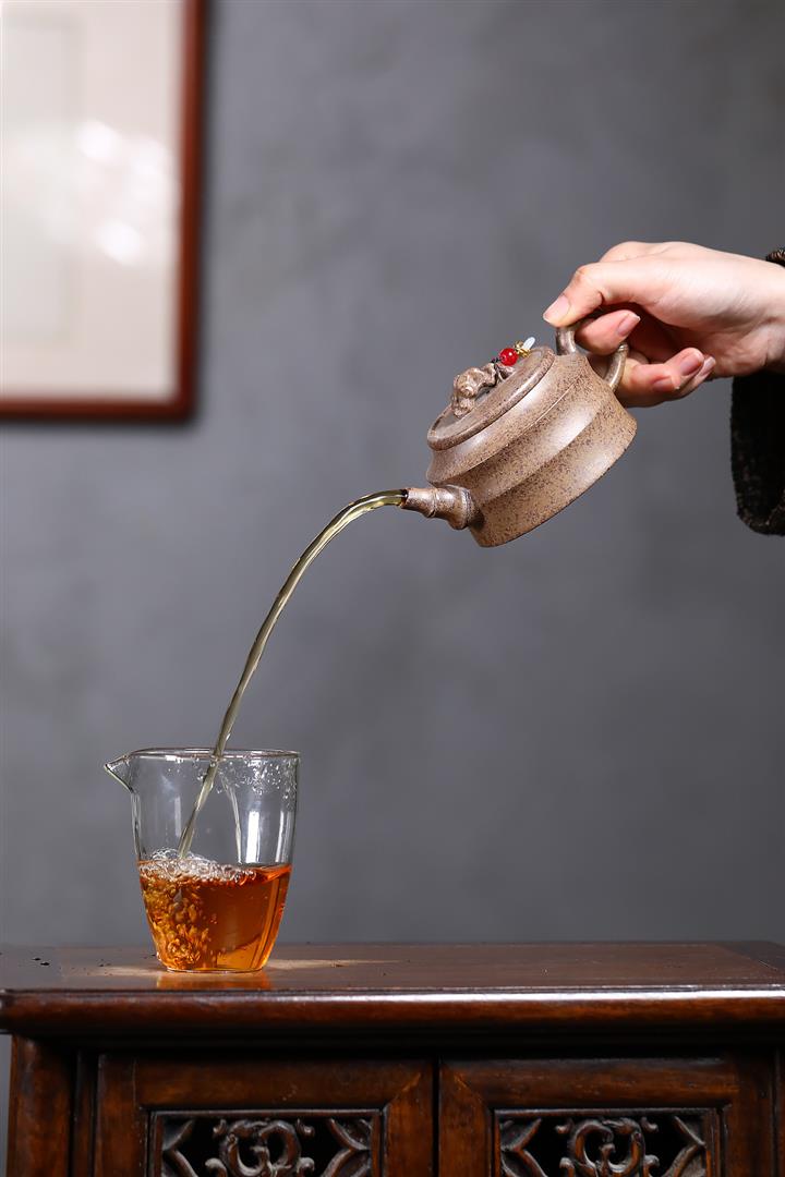 【泥料特點】砂土氣重,似淳實農民,日久使用,漸露鋒芒,養成變化,溫潤莊重。紫砂是壹種雙重氣孔結構的多孔性材質,氣孔微細,密度高。用紫砂壺沏茶,不失原味,且香不渙散,得茶之真香真味。紫砂使用越久,壺身色澤越發光亮照人,氣韻溫雅。紫砂壺長久使用器身會因撫摸擦拭,變得越發溫潤光澤。