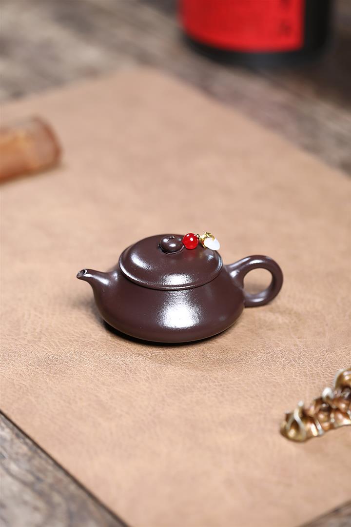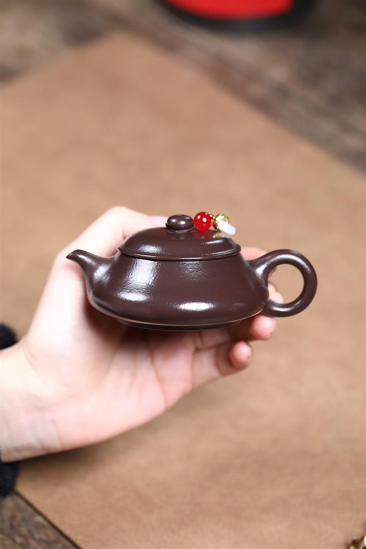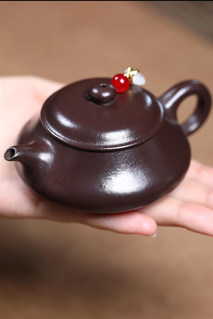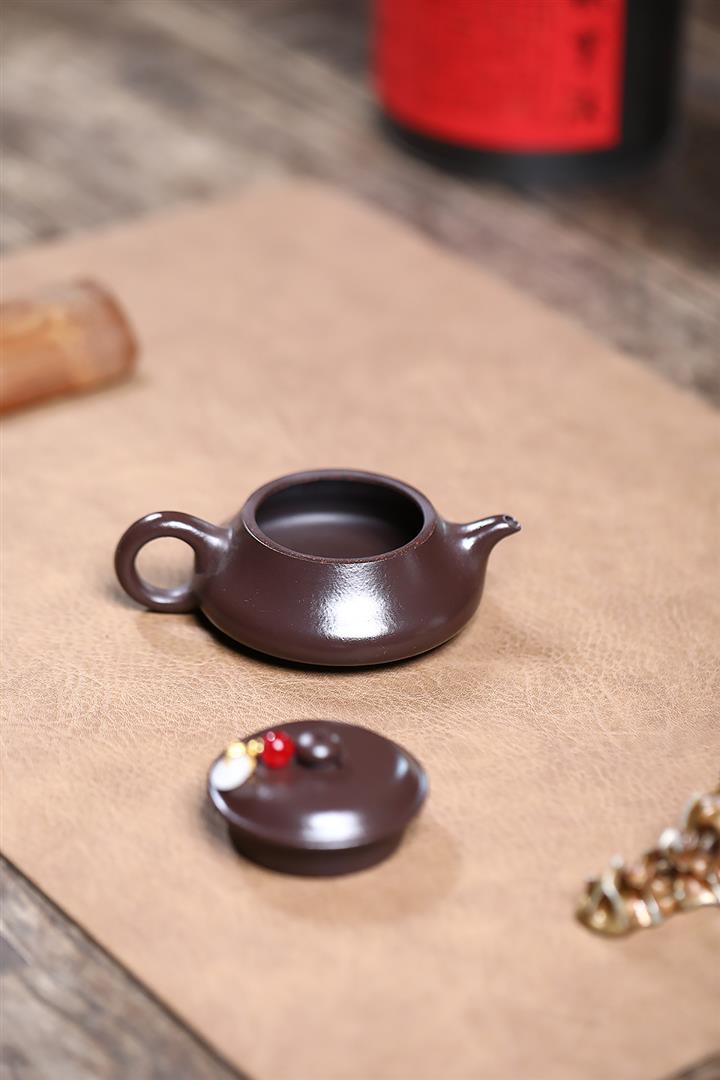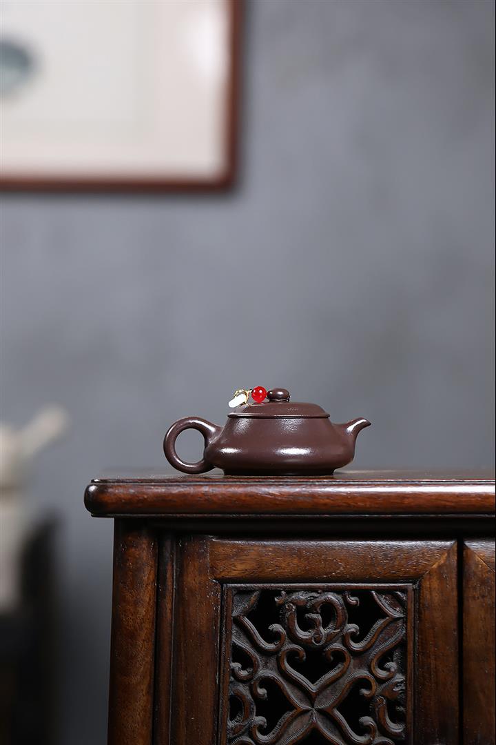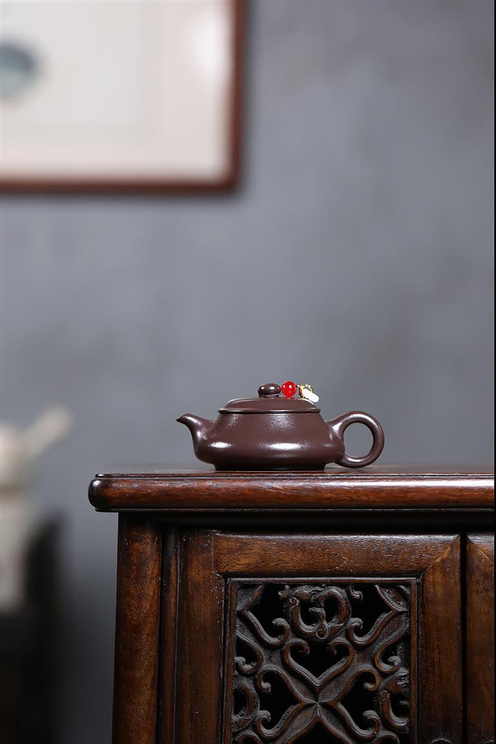 【泥料特點】砂土氣重,似淳實農民,日久使用,漸露鋒芒,養成變化,溫潤莊重。紫砂是壹種雙重氣孔結構的多孔性材質,氣孔微細,密度高。用紫砂壺沏茶,不失原味,且香不渙散,得茶之真香真味。紫砂使用越久,壺身色澤越發光亮照人,氣韻溫雅。紫砂壺長久使用器身會因撫摸擦拭,變得越發溫潤光澤。