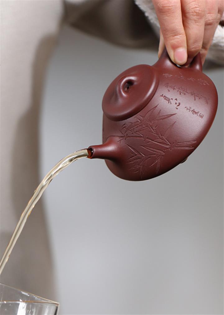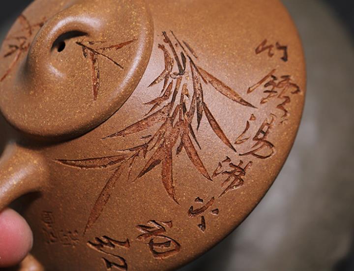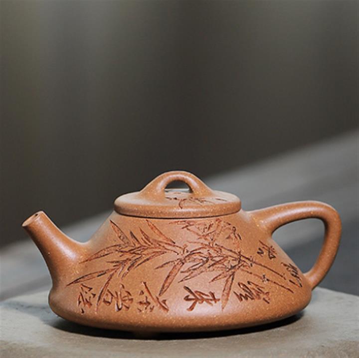 170cc/190cc原礦降坡泥/紫泥陶刻竹葉子冶石瓢茶壺POT9228