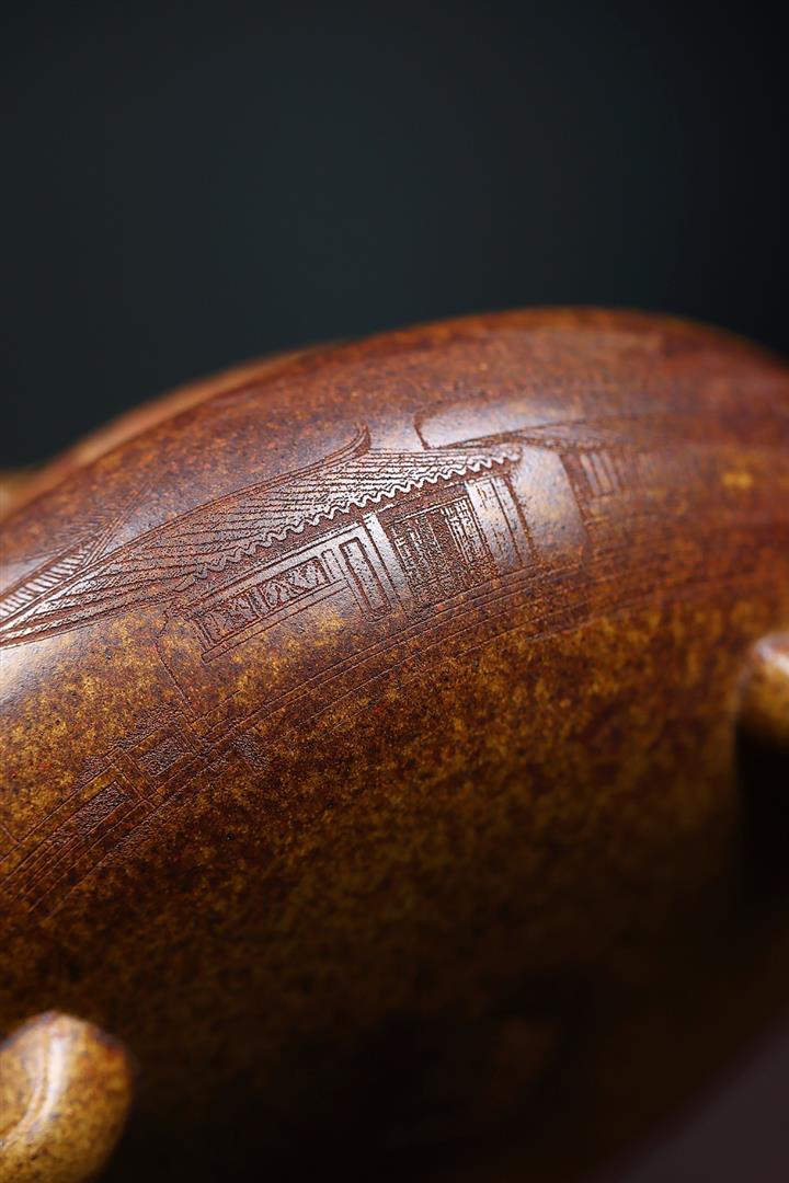 【泥料特點】砂土氣重,似淳實農民,日久使用,漸露鋒芒,養成變化,溫潤莊重。紫砂是壹種雙重氣孔結構的多孔性材質,氣孔微細,密度高。用紫砂壺沏茶,不失原味,且香不渙散,得茶之真香真味。紫砂使用越久,壺身色澤越發光亮照人,氣韻溫雅。紫砂壺長久使用器身會因撫摸擦拭,變得越發溫潤光澤。