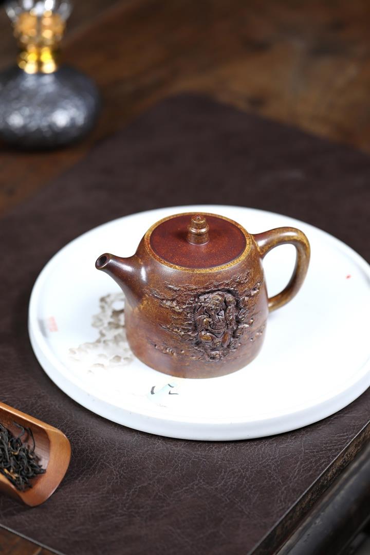 【泥料特點】砂土氣重,似淳實農民,日久使用,漸露鋒芒,養成變化,溫潤莊重。紫砂是壹種雙重氣孔結構的多孔性材質,氣孔微細,密度高。用紫砂壺沏茶,不失原味,且香不渙散,得茶之真香真味。紫砂使用越久,壺身色澤越發光亮照人,氣韻溫雅。紫砂壺長久使用器身會因撫摸擦拭,變得越發溫潤光澤。