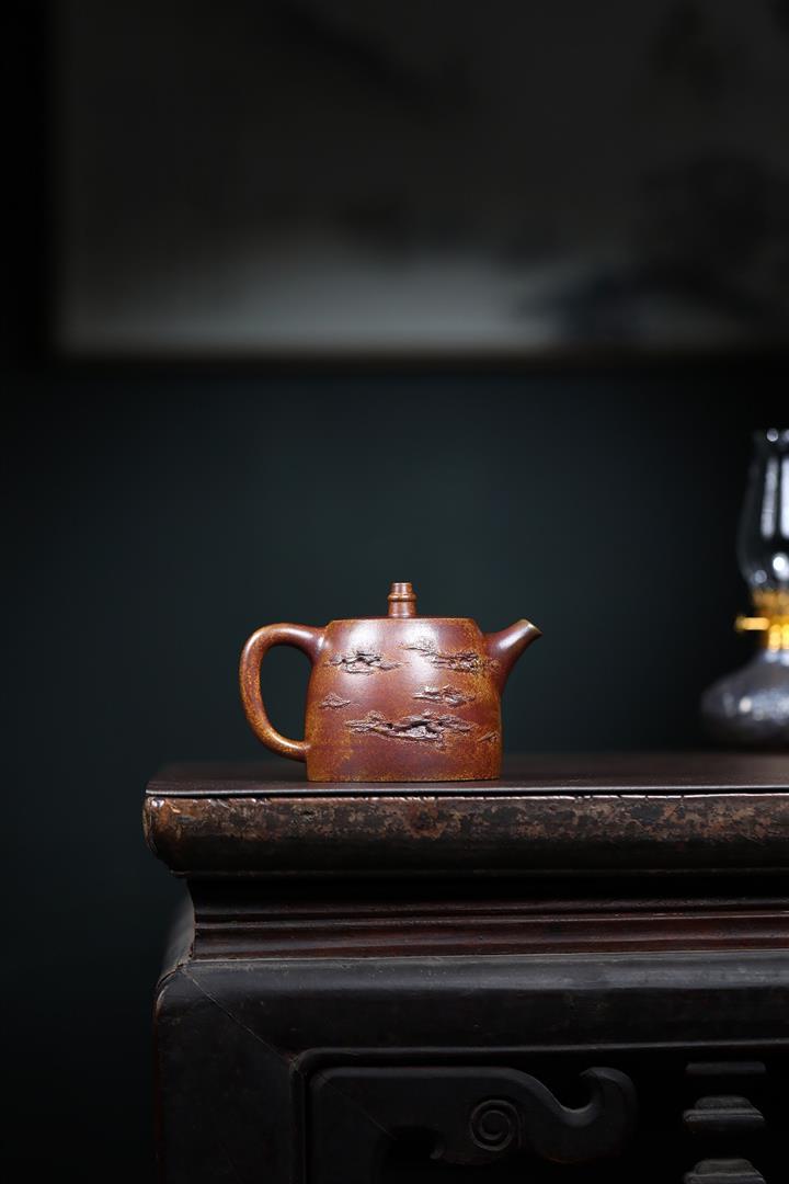 200cc原礦龍骨金砂柴燒金方茶壺POT9241