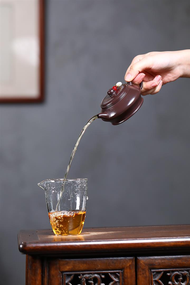 【泥料特點】砂土氣重,似淳實農民,日久使用,漸露鋒芒,養成變化,溫潤莊重。紫砂是壹種雙重氣孔結構的多孔性材質,氣孔微細,密度高。用紫砂壺沏茶,不失原味,且香不渙散,得茶之真香真味。紫砂使用越久,壺身色澤越發光亮照人,氣韻溫雅。紫砂壺長久使用器身會因撫摸擦拭,變得越發溫潤光澤。