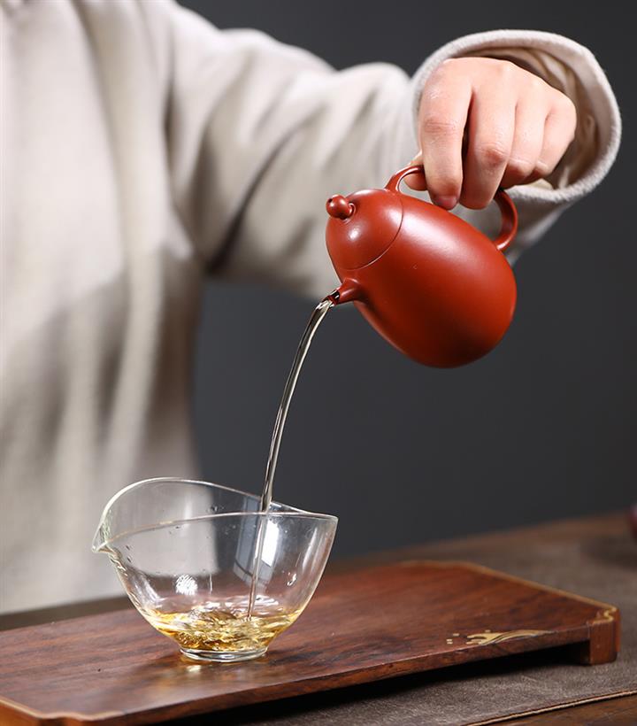 【泥料特點】砂土氣重,似淳實農民,日久使用,漸露鋒芒,養成變化,溫潤莊重。紫砂是壹種雙重氣孔結構的多孔性材質,氣孔微細,密度高。用紫砂壺沏茶,不失原味,且香不渙散,得茶之真香真味。紫砂使用越久,壺身色澤越發光亮照人,氣韻溫雅。紫砂壺長久使用器身會因撫摸擦拭,變得越發溫潤光澤。