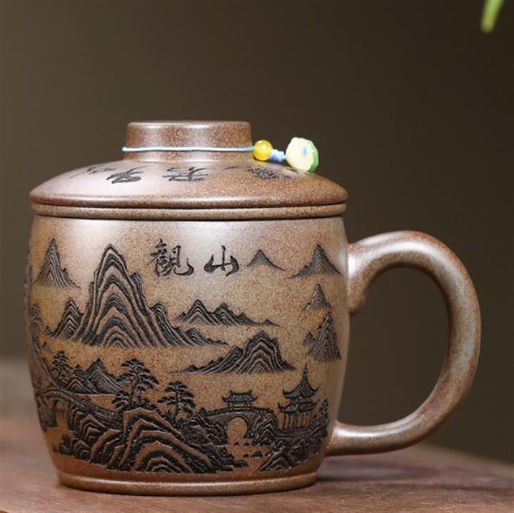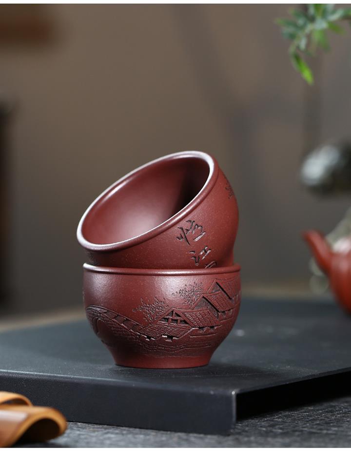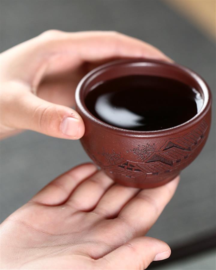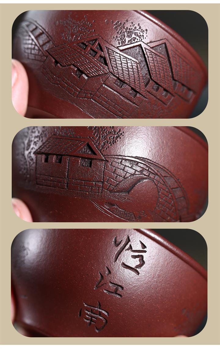 120cc原礦紫泥全手工鏤刻憶江南主人杯POT9249