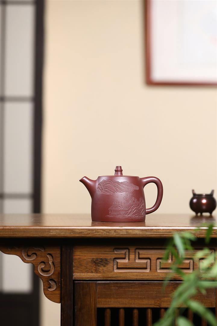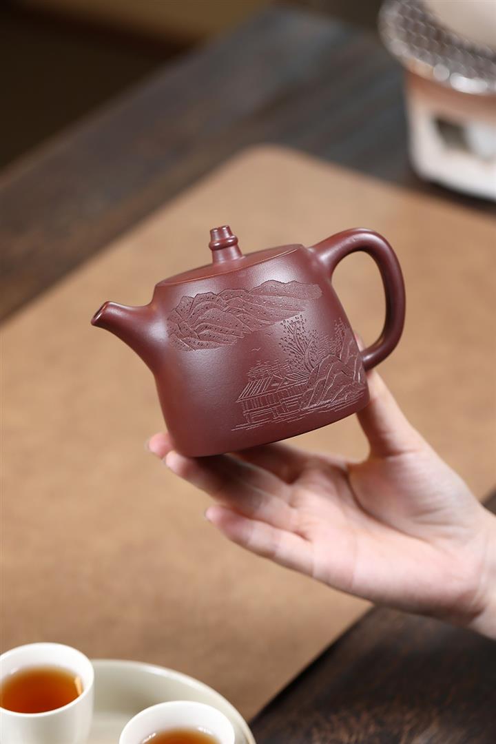 【作品介紹】此款壺形線條流暢,壺把,壺嘴,壺身壹氣呵成栩栩如生,是收藏把玩的好壺,泥料色澤古樸典雅,日久使用,漸露鋒芒,養成變化快,溫潤莊重,用其泡茶,使用的年代久,壺身就溫潤,泡出來的茶湯也就醇郁芳馨。