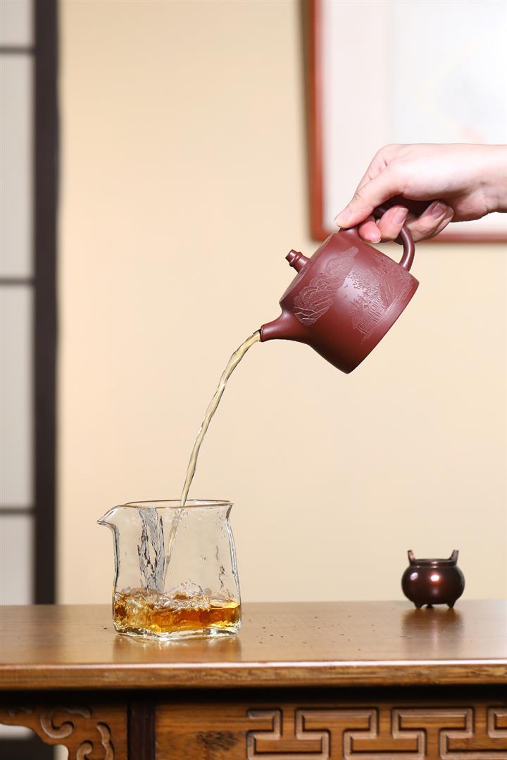 【泥料特點】砂土氣重,似淳實農民,日久使用,漸露鋒芒,養成變化,溫潤莊重。紫砂是壹種雙重氣孔結構的多孔性材質,氣孔微細,密度高。用紫砂壺沏茶,不失原味,且香不渙散,得茶之真香真味。紫砂使用越久,壺身色澤越發光亮照人,氣韻溫雅。紫砂壺長久使用器身會因撫摸擦拭,變得越發溫潤光澤。